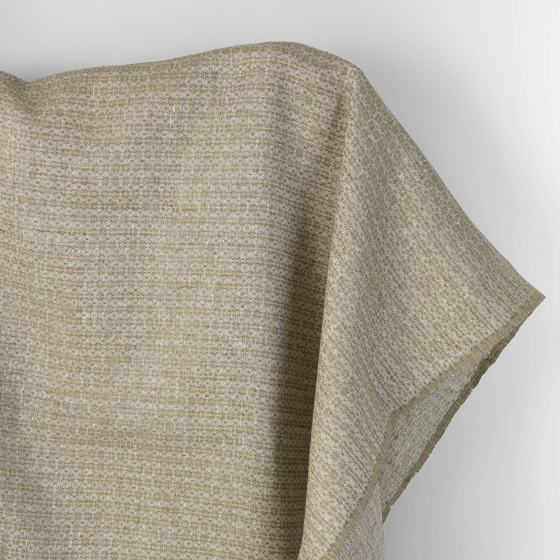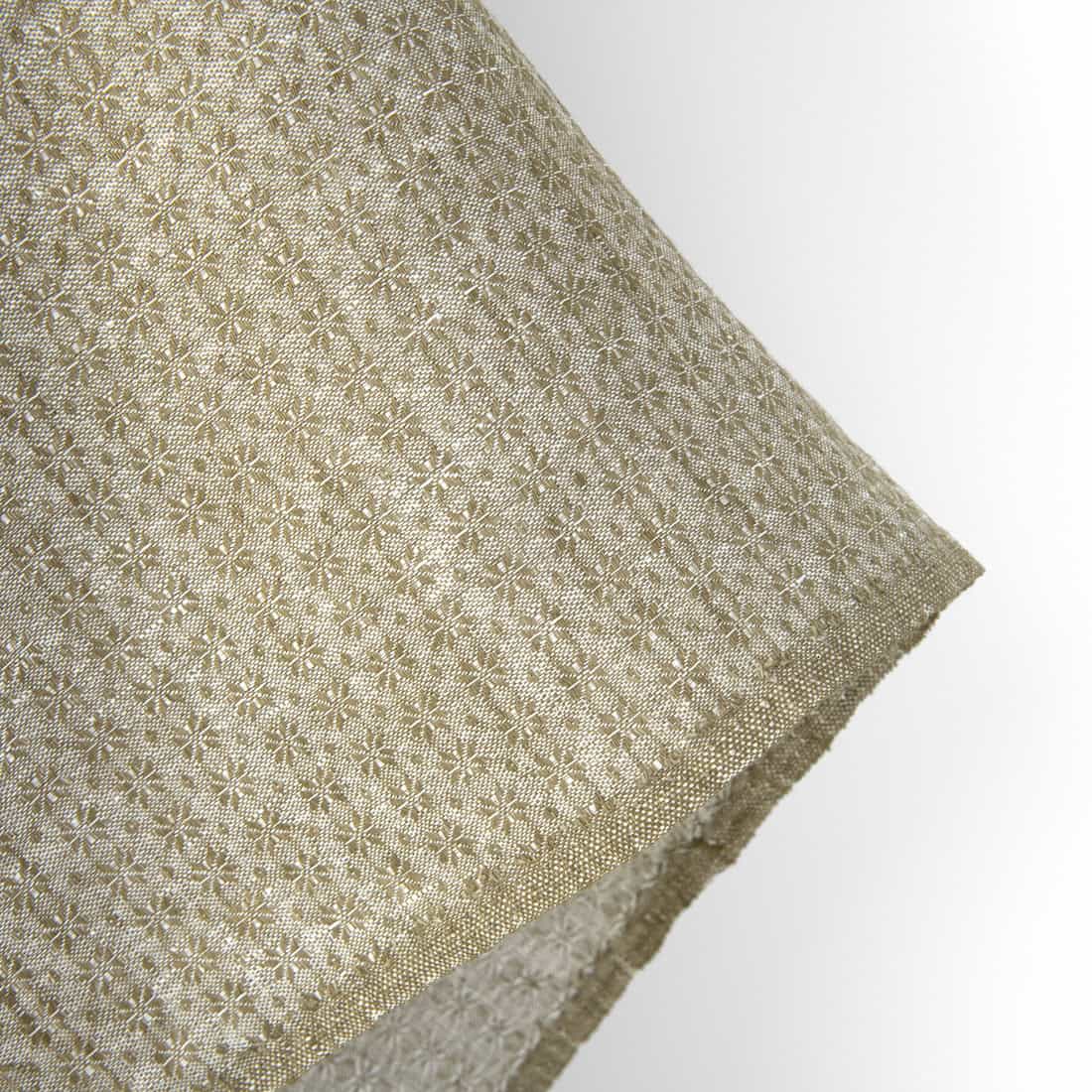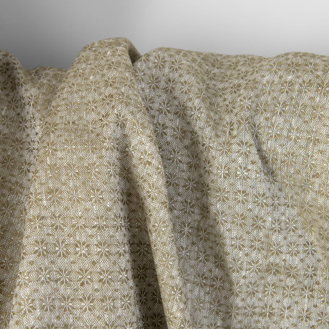 • Grønt linstoff med blomstermønster for sying klær, hjemmetekstiler