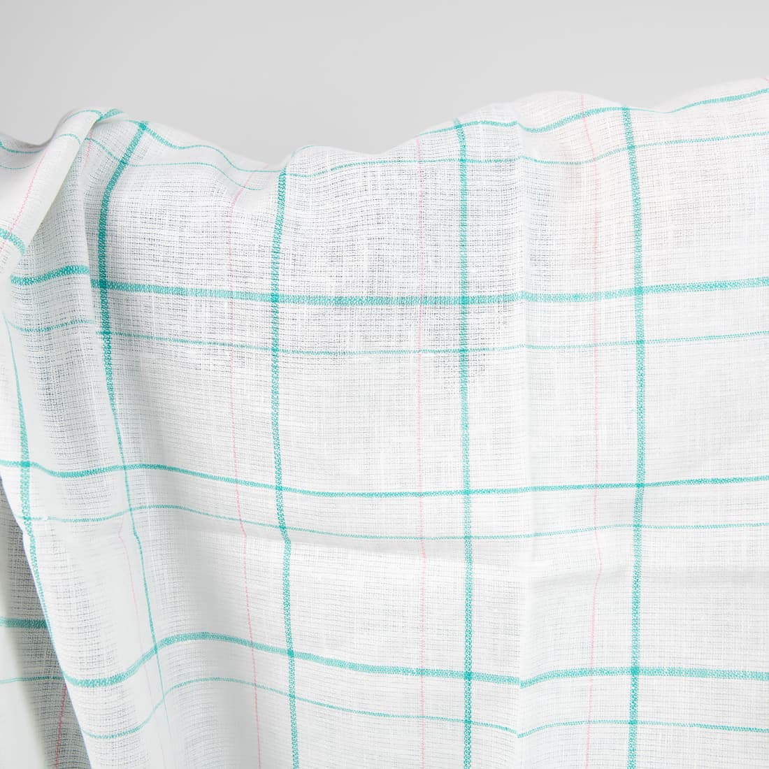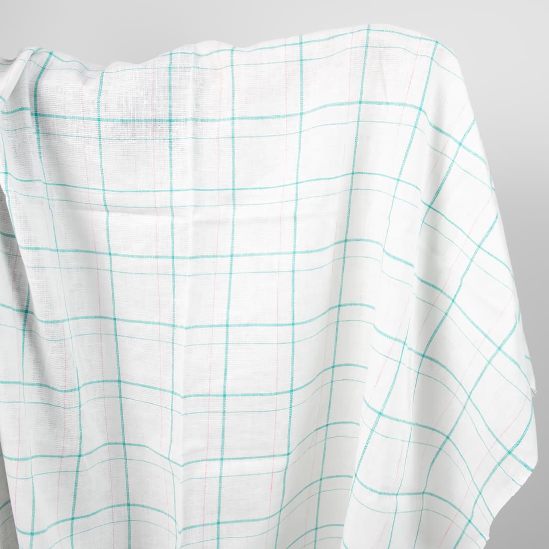• Grønt, rosa rutete linstoff for å sy klær og hjemmetekstiler