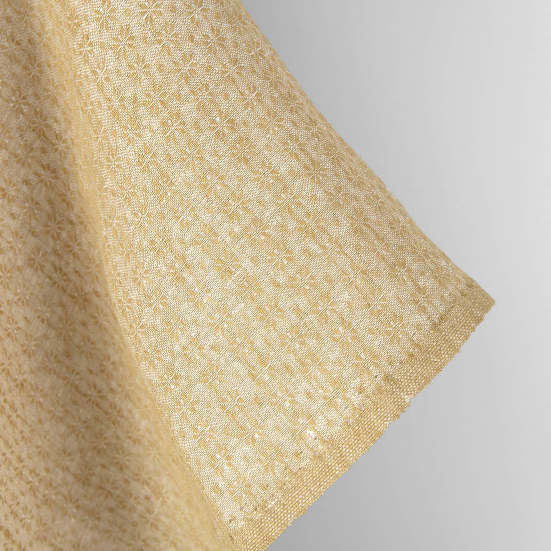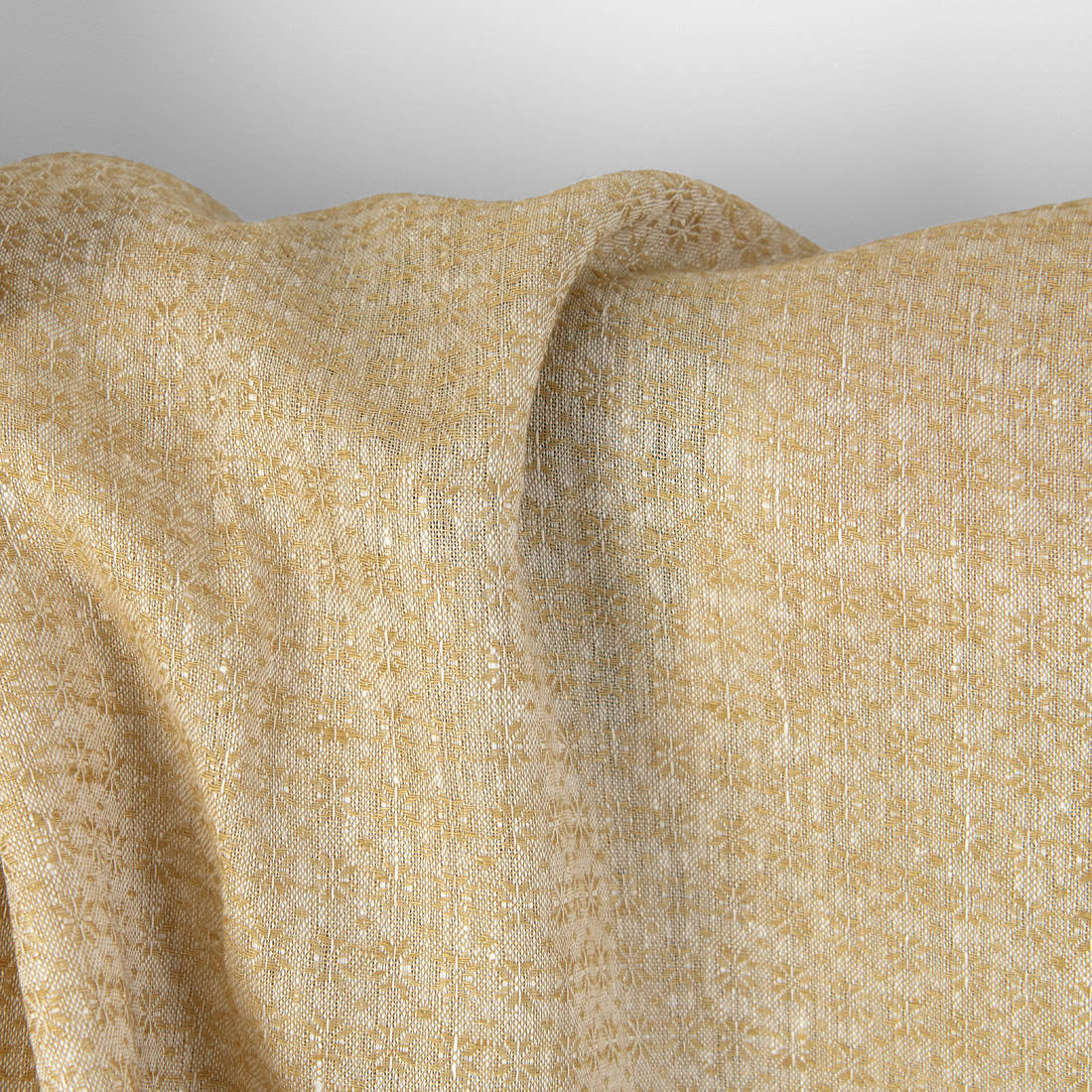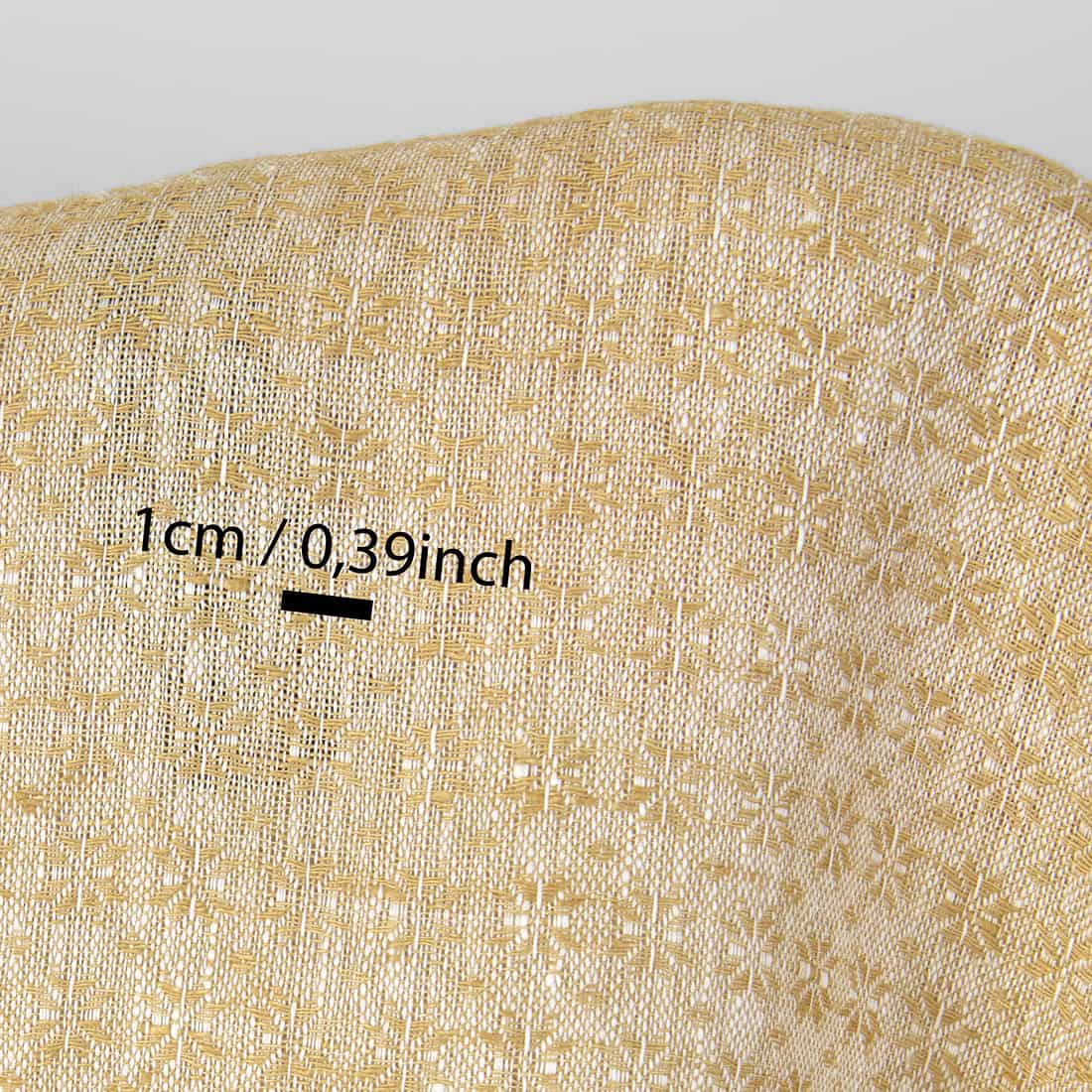 • Gult linstoff med blomstermønster for sying klær, hjemmetekstiler
