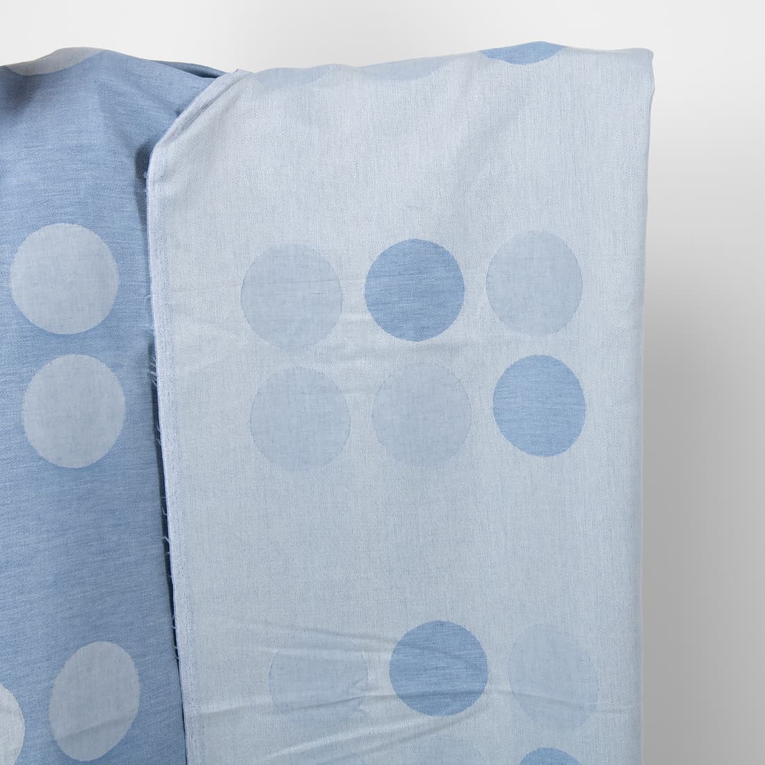 • Lin-bomullstoff jacquard med store bobler vevd av lyse blågrått og lyseblått garn