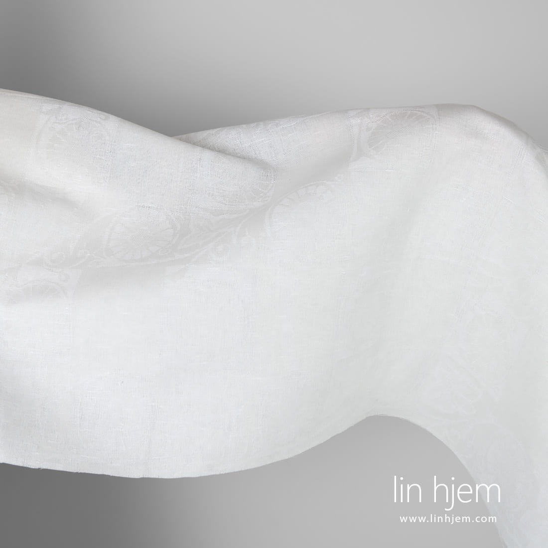 Halvlin hvitt blomstret stoff