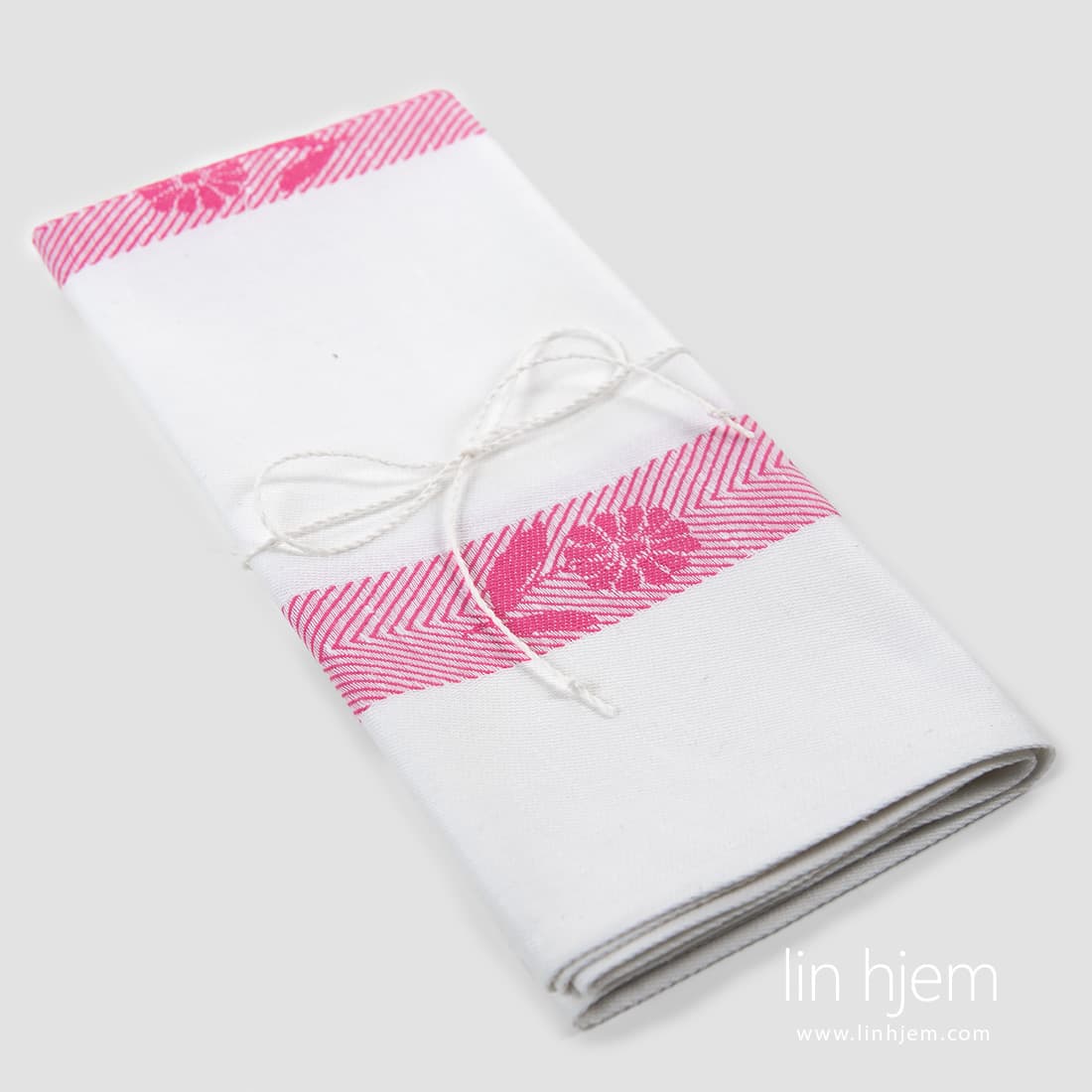 • Halvlin kjøkkenhåndkle 49 med rosa blomster