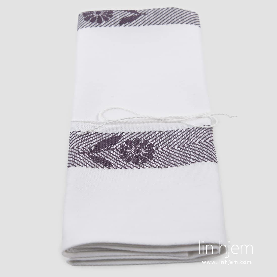 • Halvlin kjøkkenhåndkle hvitt med lilla blomster, jacquard, 50x70cm