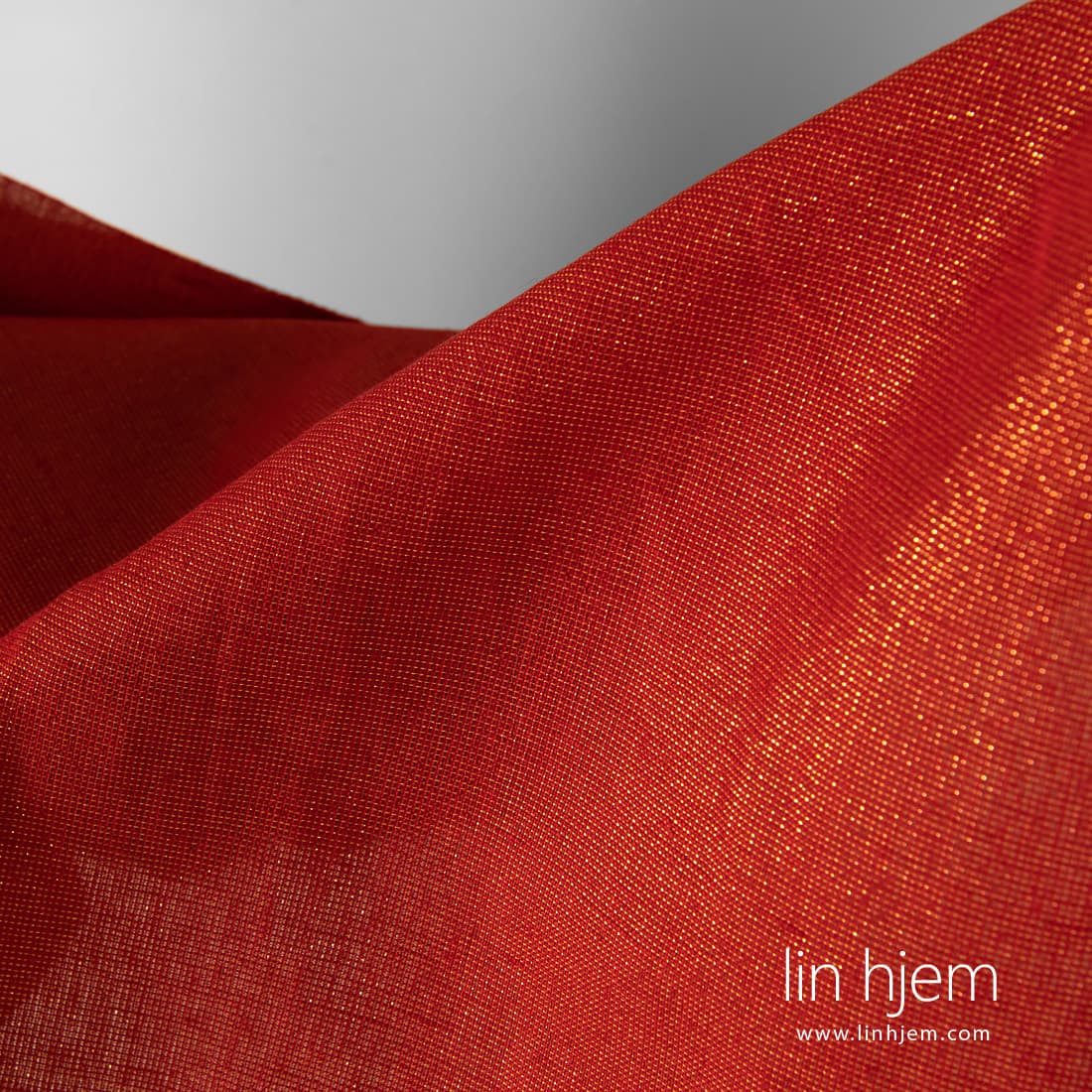 • Rødt halvlin stoff med gullglans.