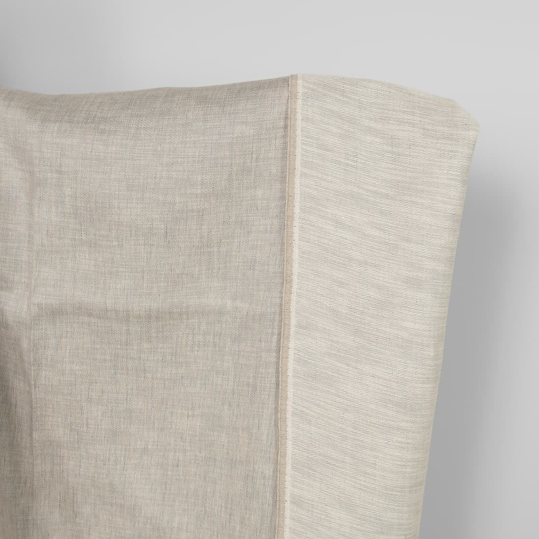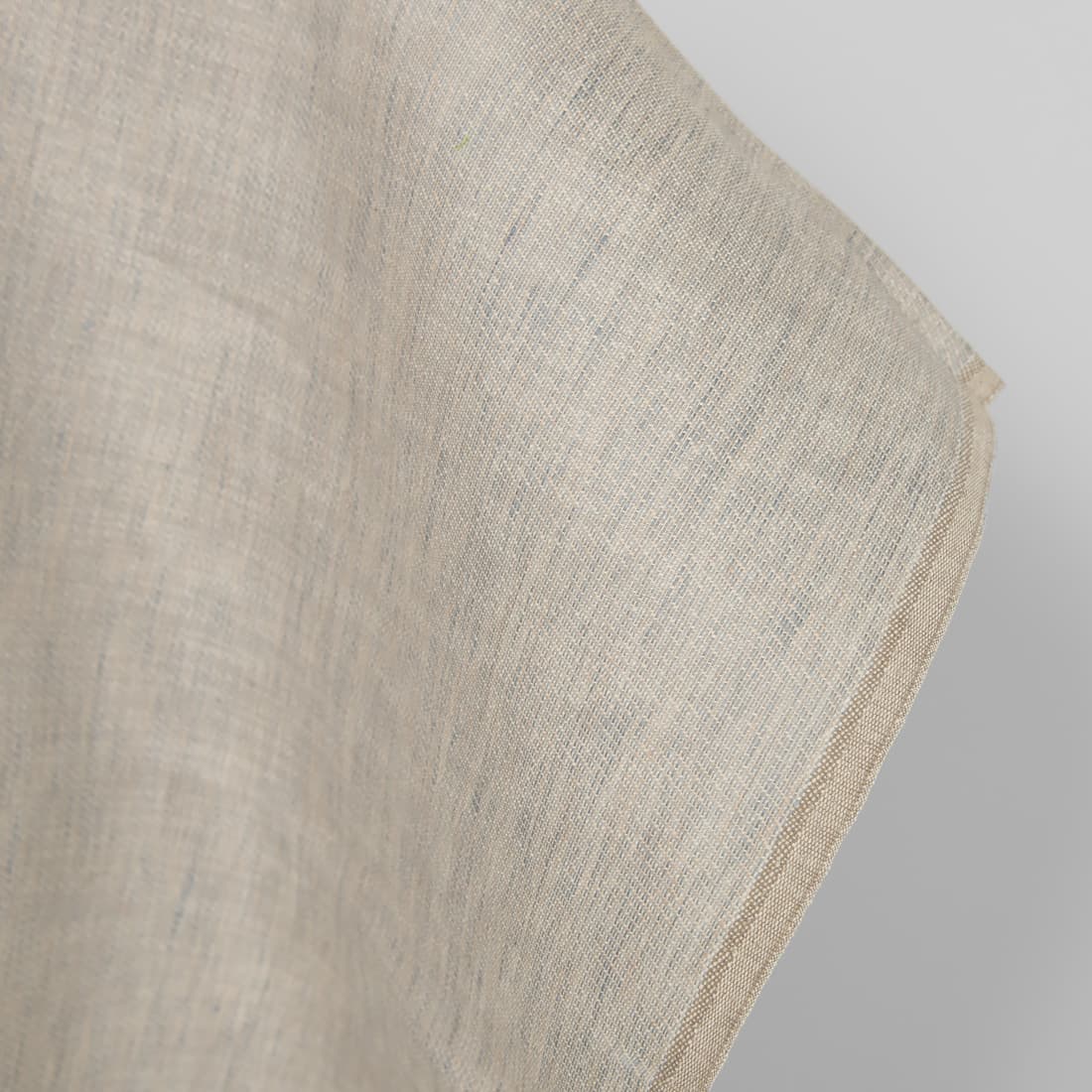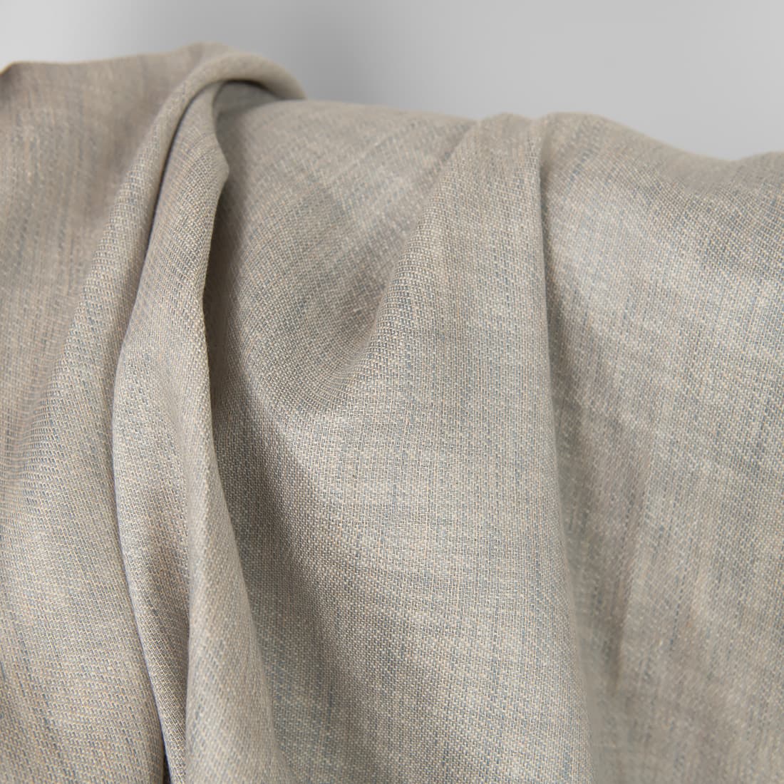 • Halvlin stoff, vevd blågrått, hvitt og bleket kakaofarge (lysebrunt) garn
