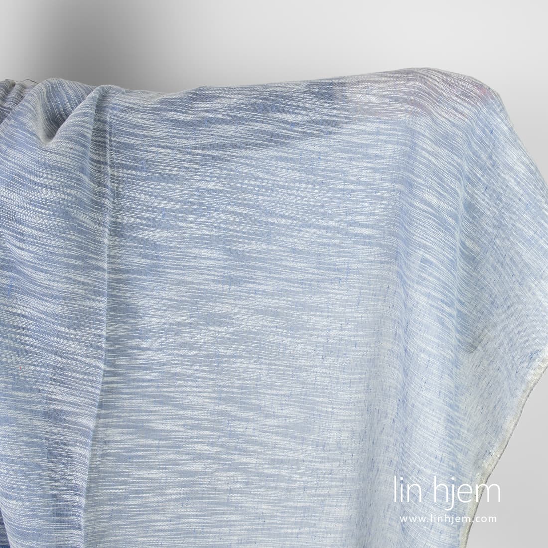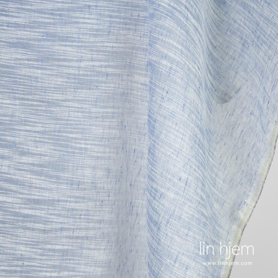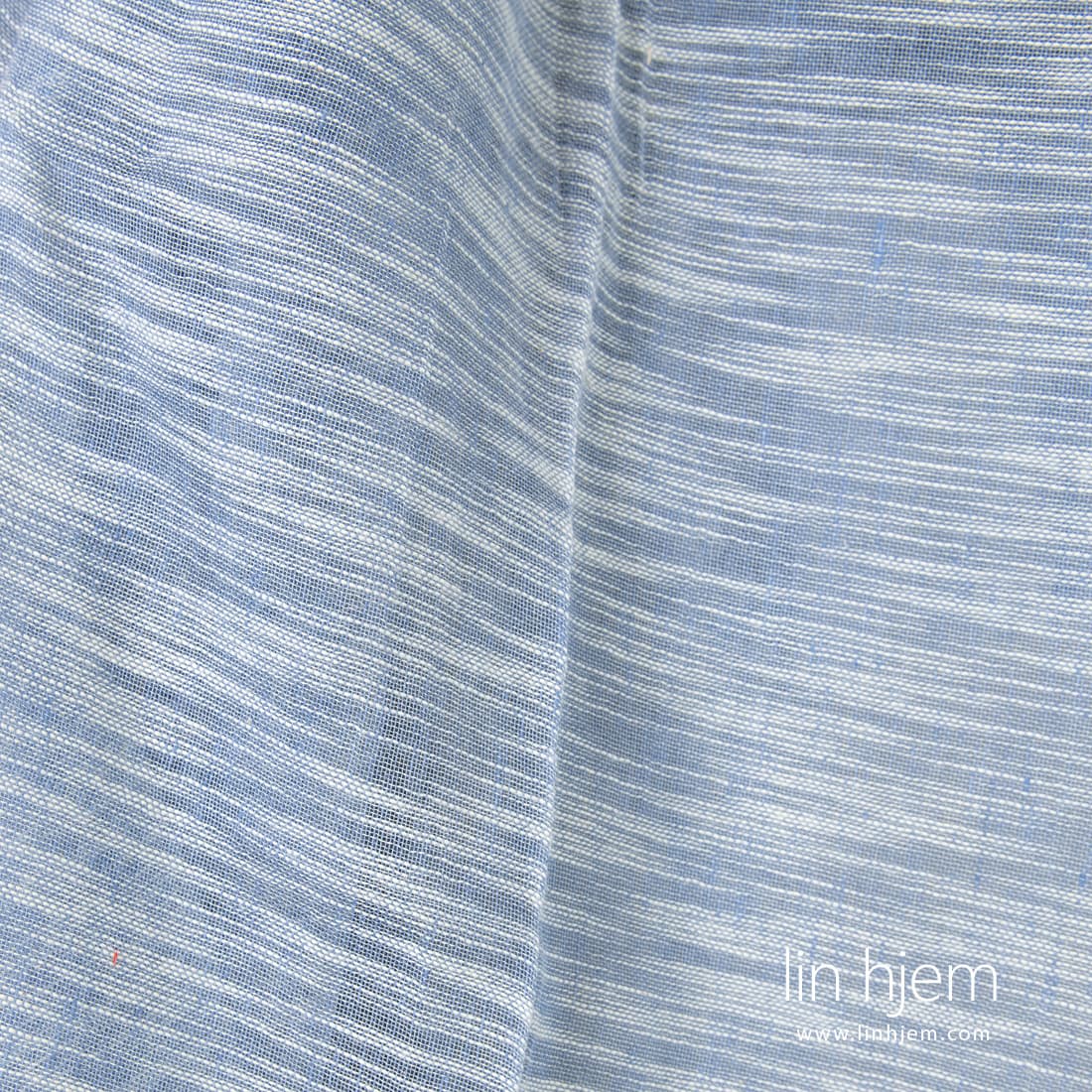• Halvlin stoff blåaktig i hvite striper.