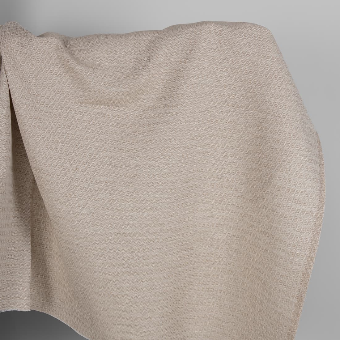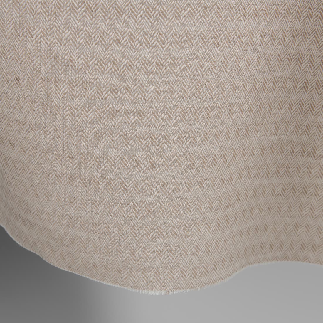 • Lin-bomullstoff brun-hvit med fiskebeinsmønster