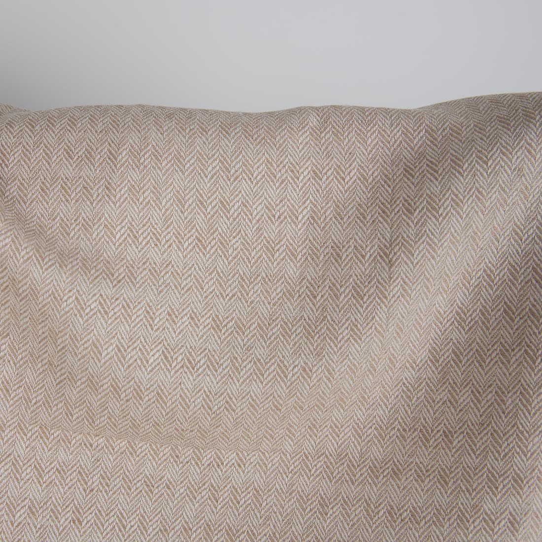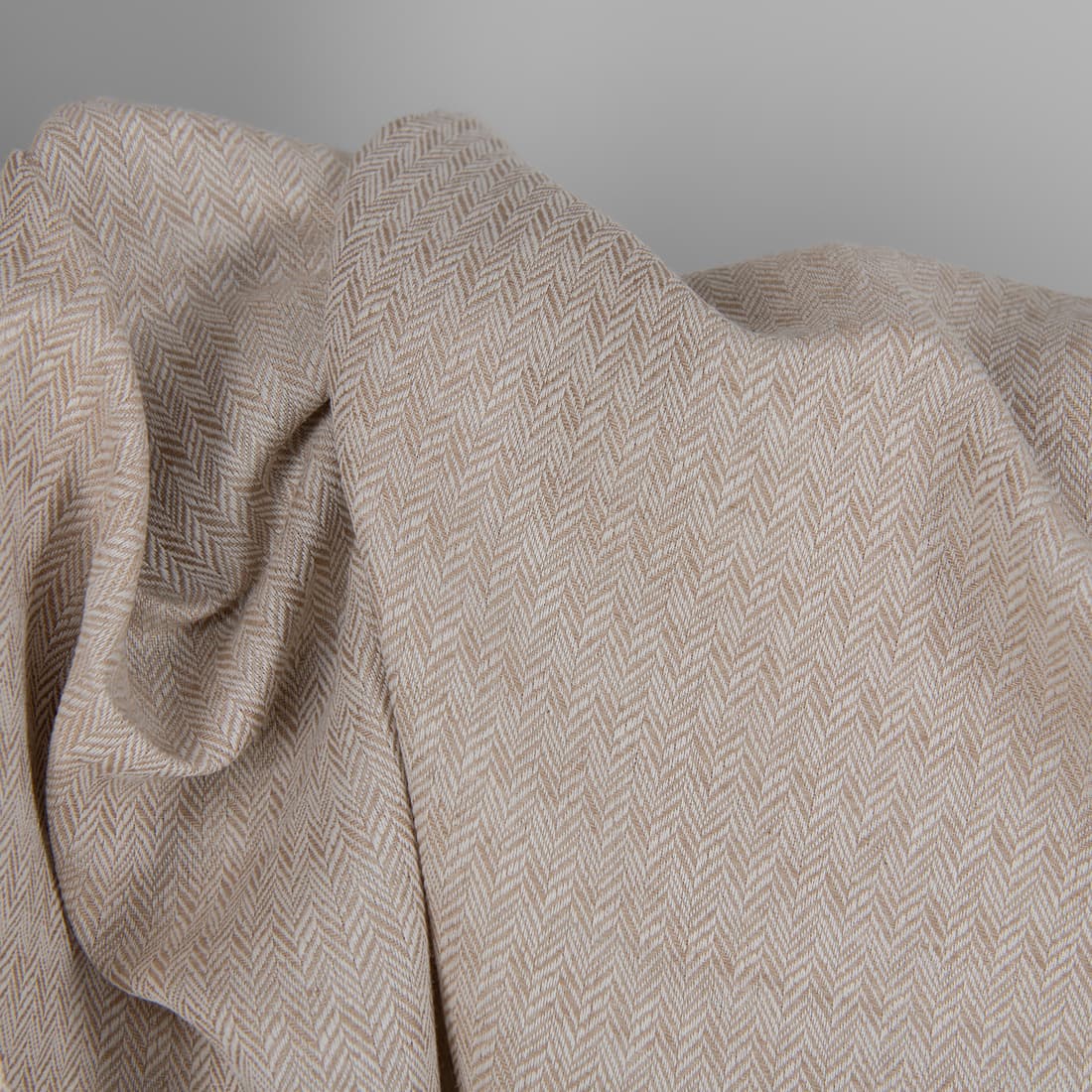 • Lin-bomullstoff brun-hvit med fiskebeinsmønster til klær, hjemmetekstiler