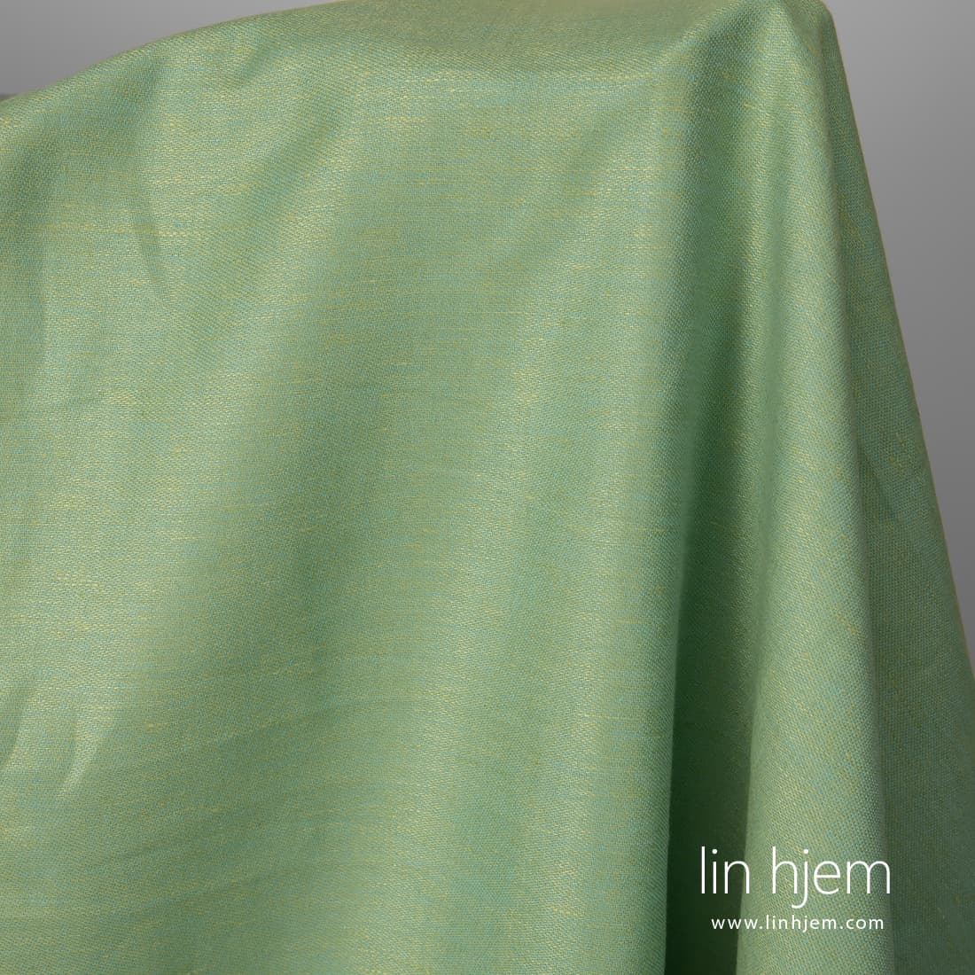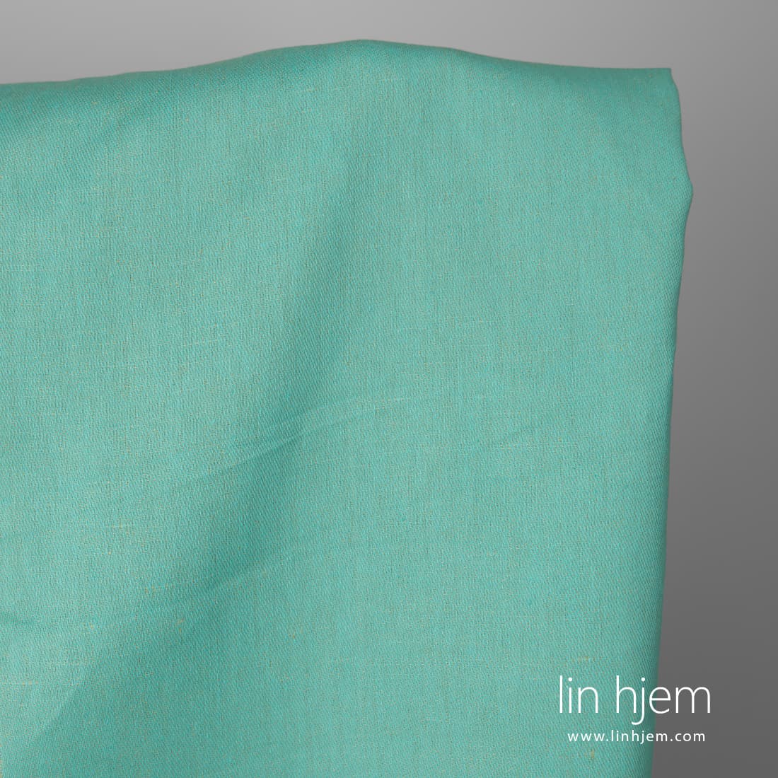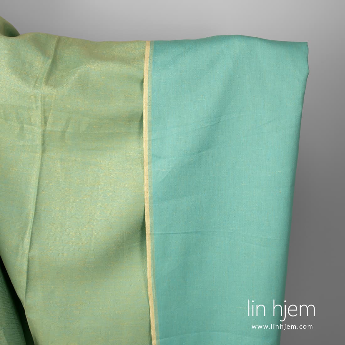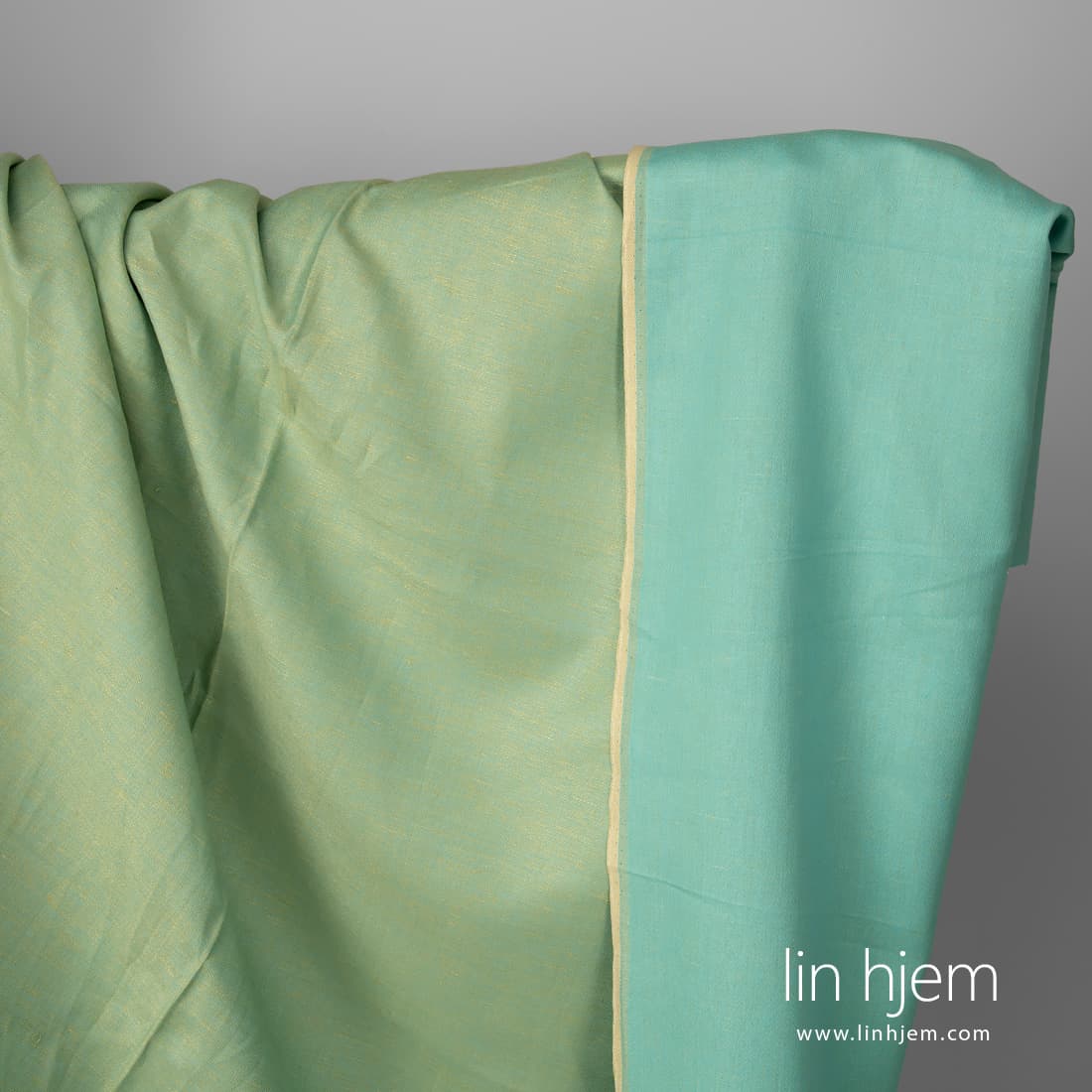 • Lin-bomull stoff dobbeltsidig vevd av lysegrønt og turkis garn