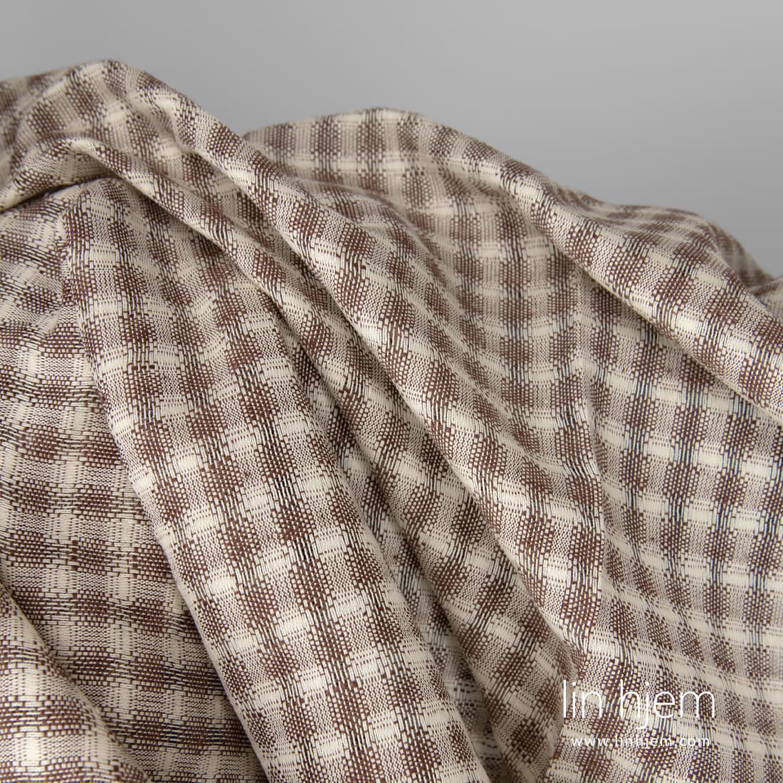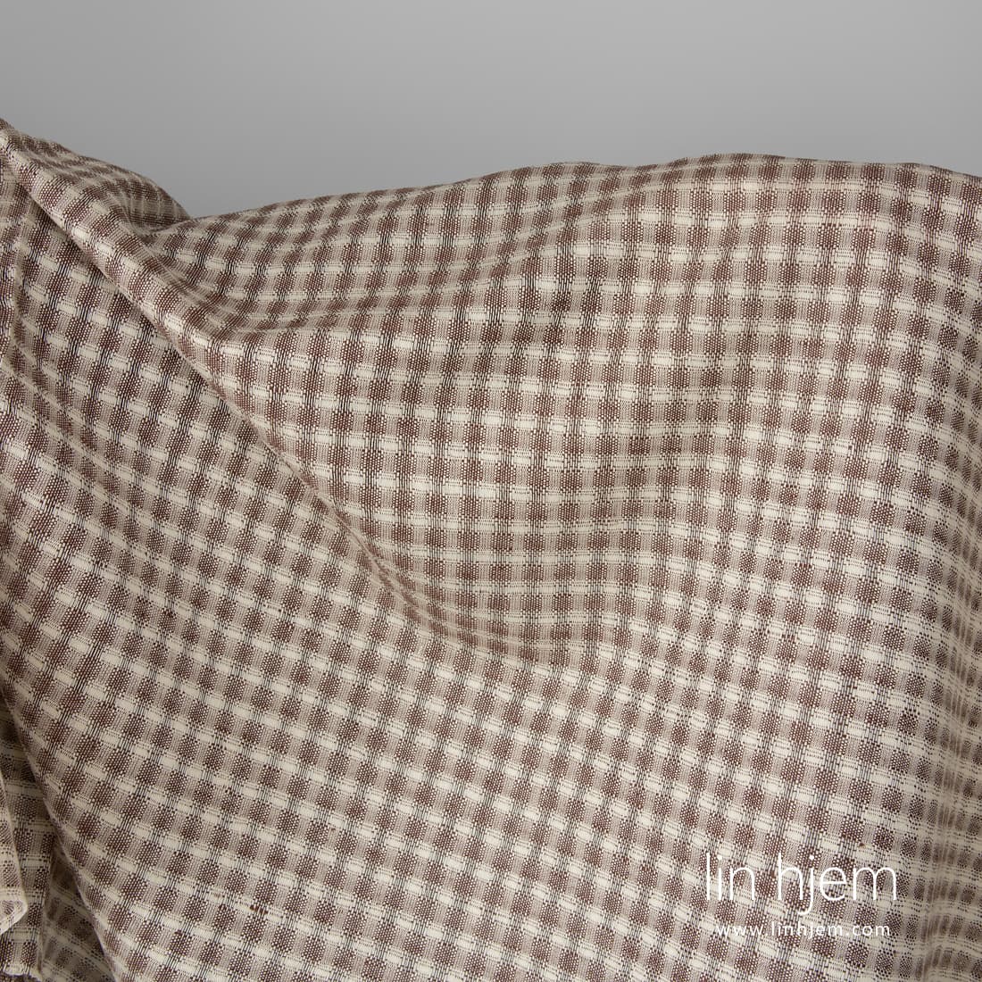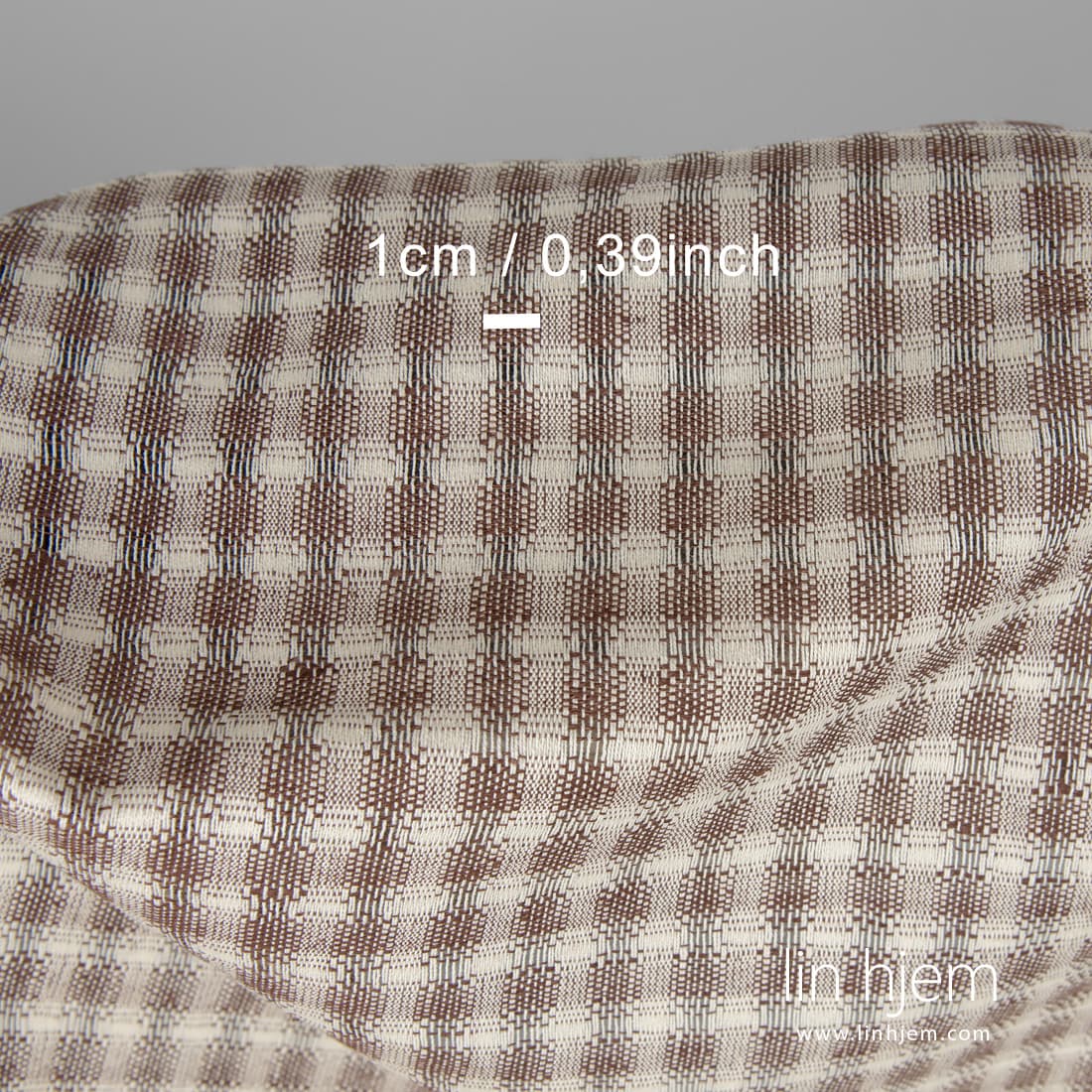 • Lin bomullstoff gulbrunt med gjennomsiktige ruter