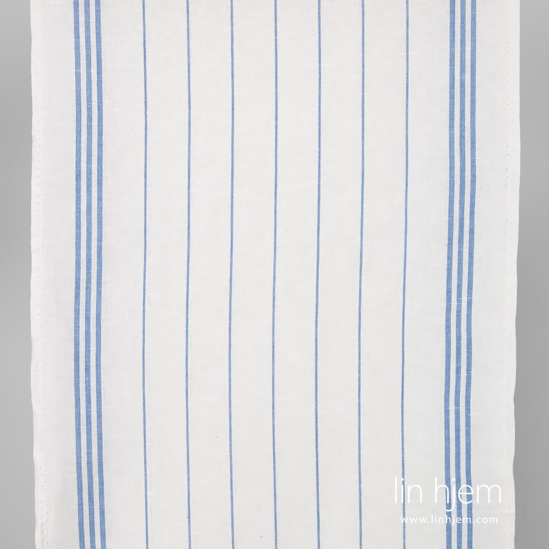• Blått stripete halvlin stoff.