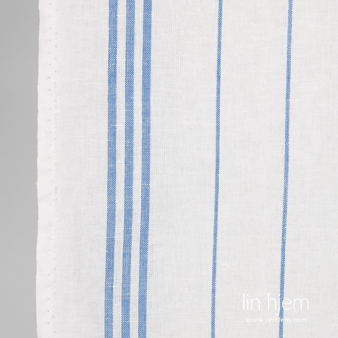 • Halvlin stoff i blå striper.