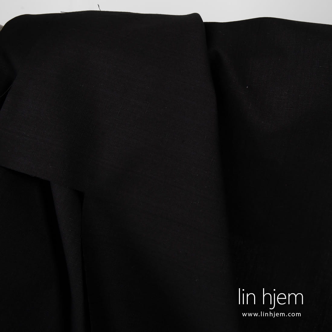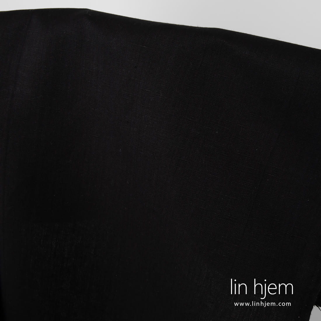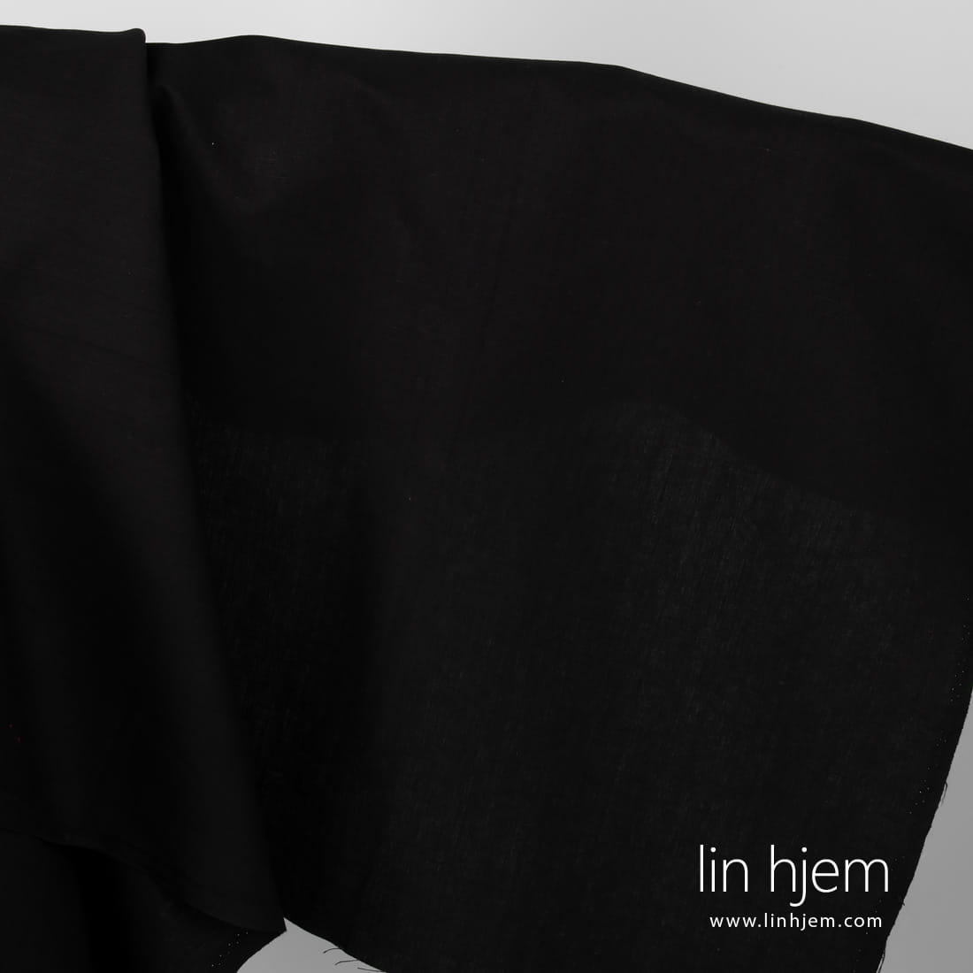 Halvlin stoff i svart av lin og bomull. Tettvevd, holdbart, middels tykkelse. Passer til å sy klær, gardiner, duker, forklær osv.