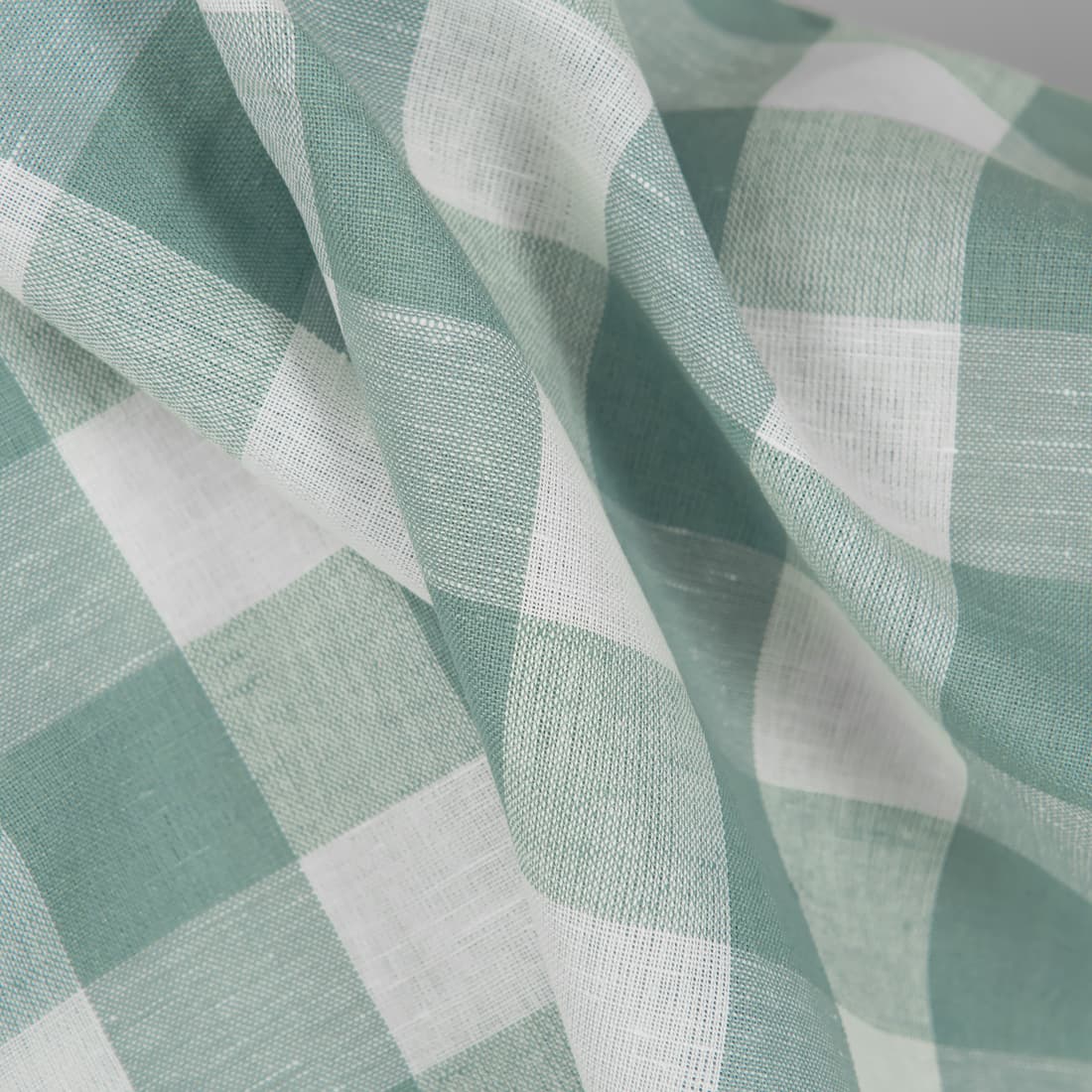 • Lin-bomull stoff med akvamarin-grønne ruter for klær og hjemmetekstiler