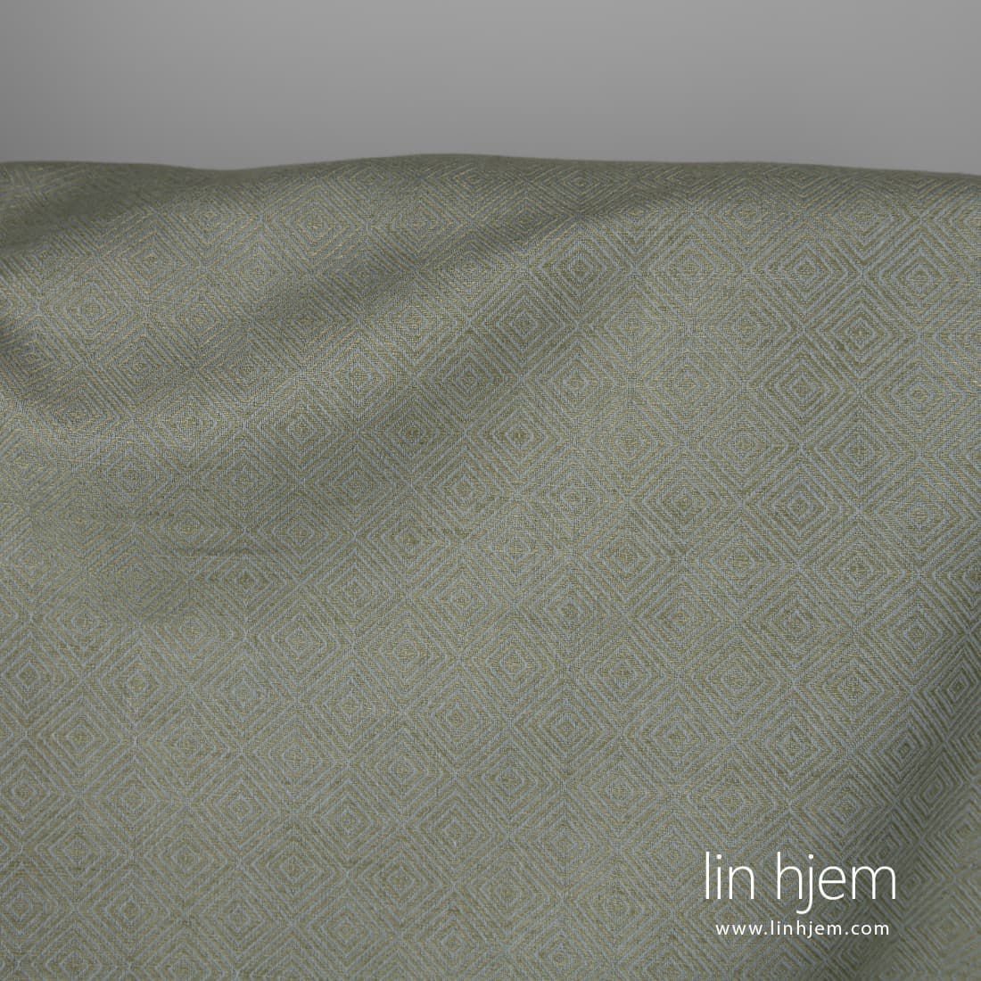• Halvlin stoff med grågrønne romber passer til å sy klær og hjemmetekstiler