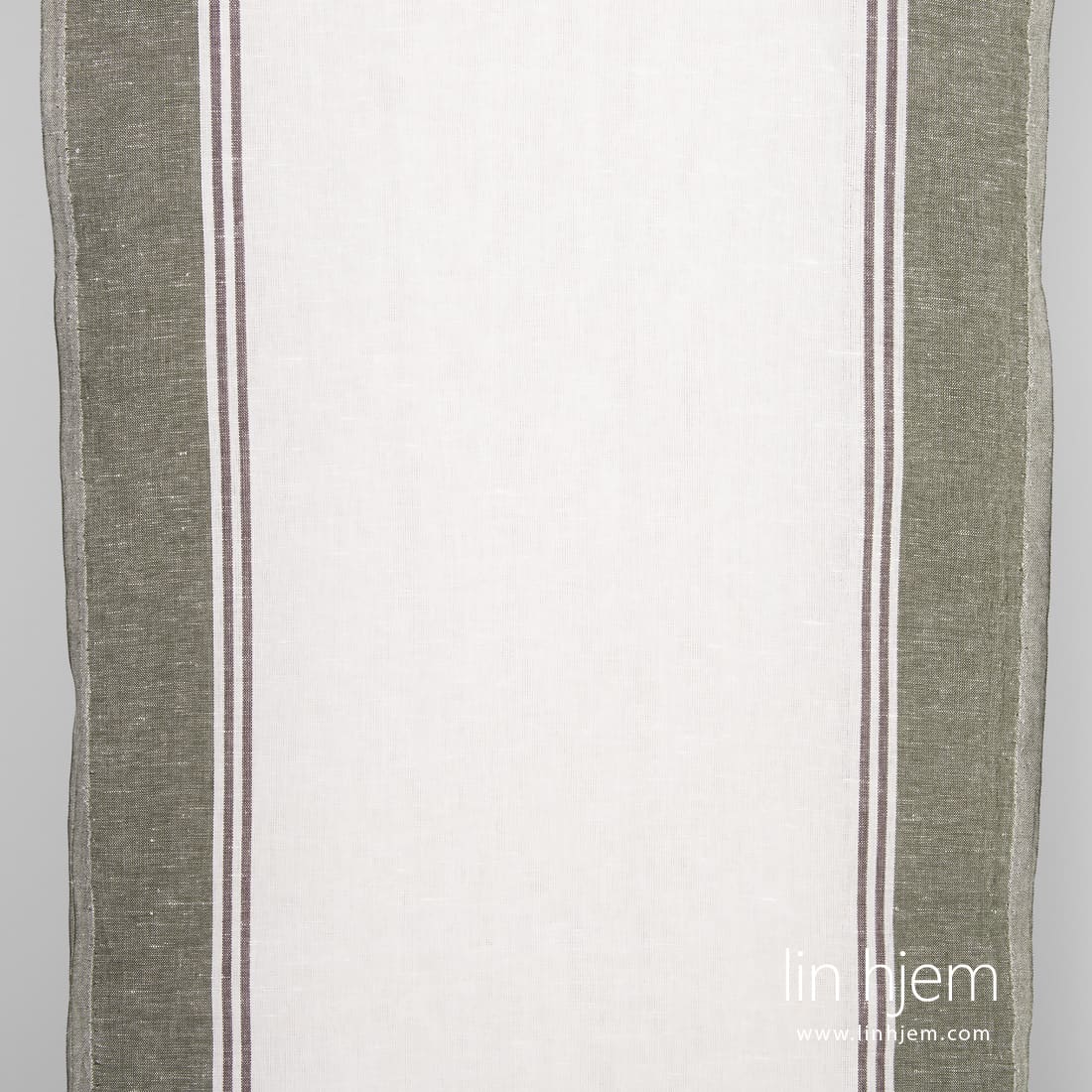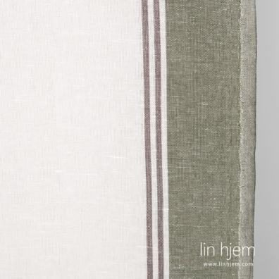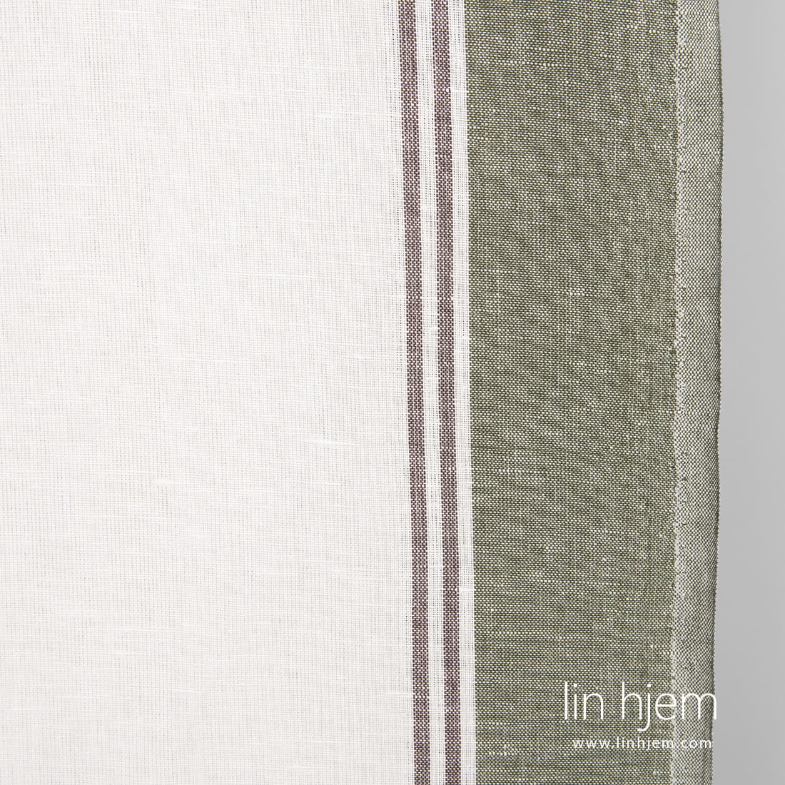 Halvlin stoff med grønne og brune striper