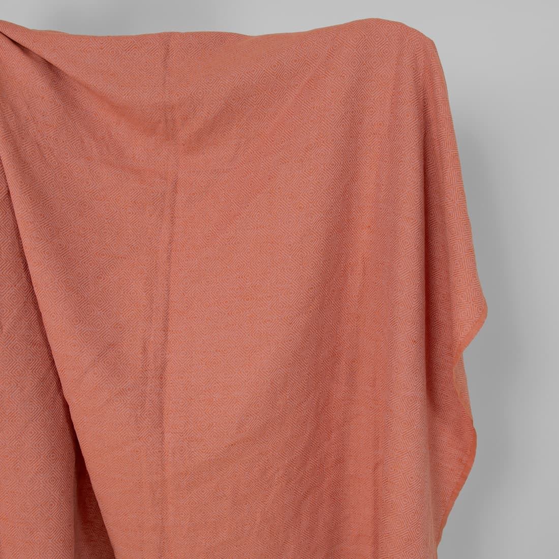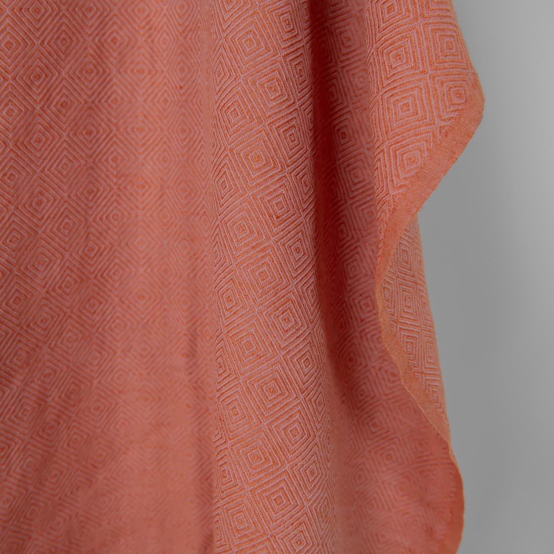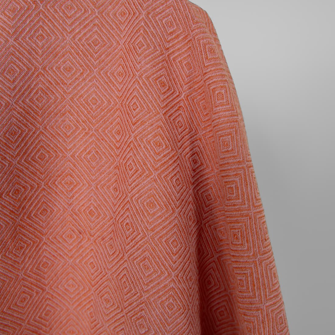 • Halvlin stoff med lilla-oransje diamanter vasket