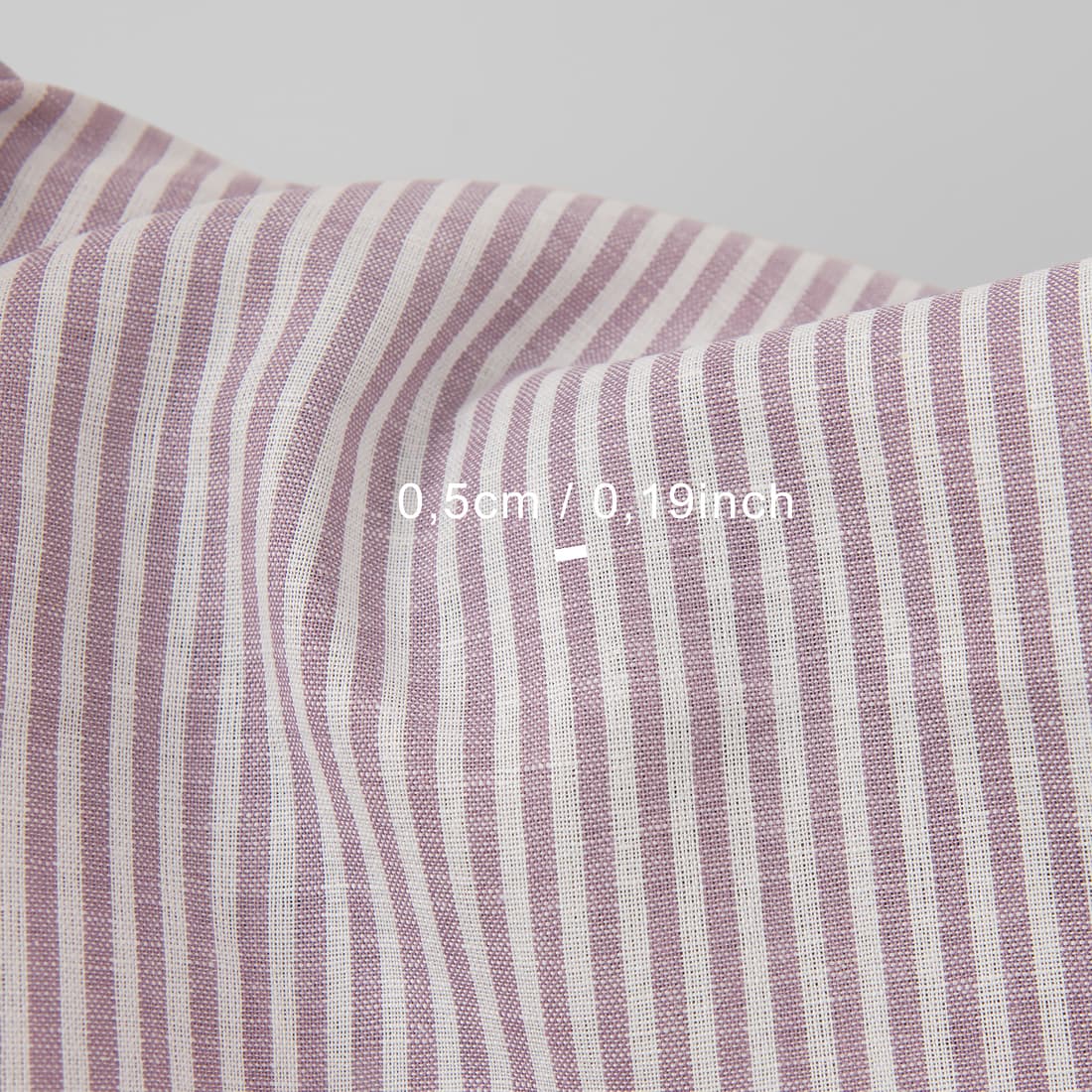 • Halvlin stoff med lilla striper bredt
