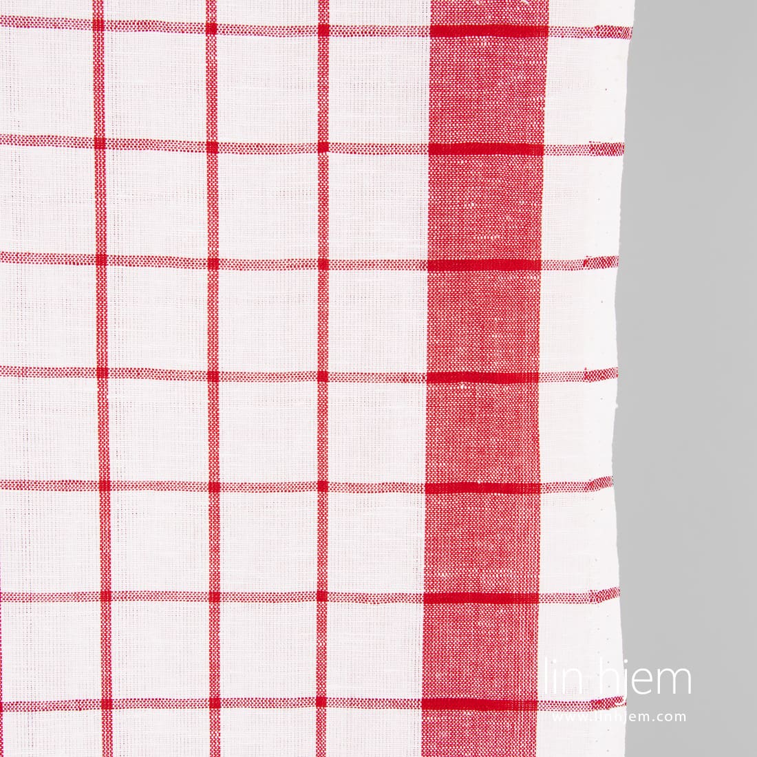 Halvlin stoff med røde ruter
