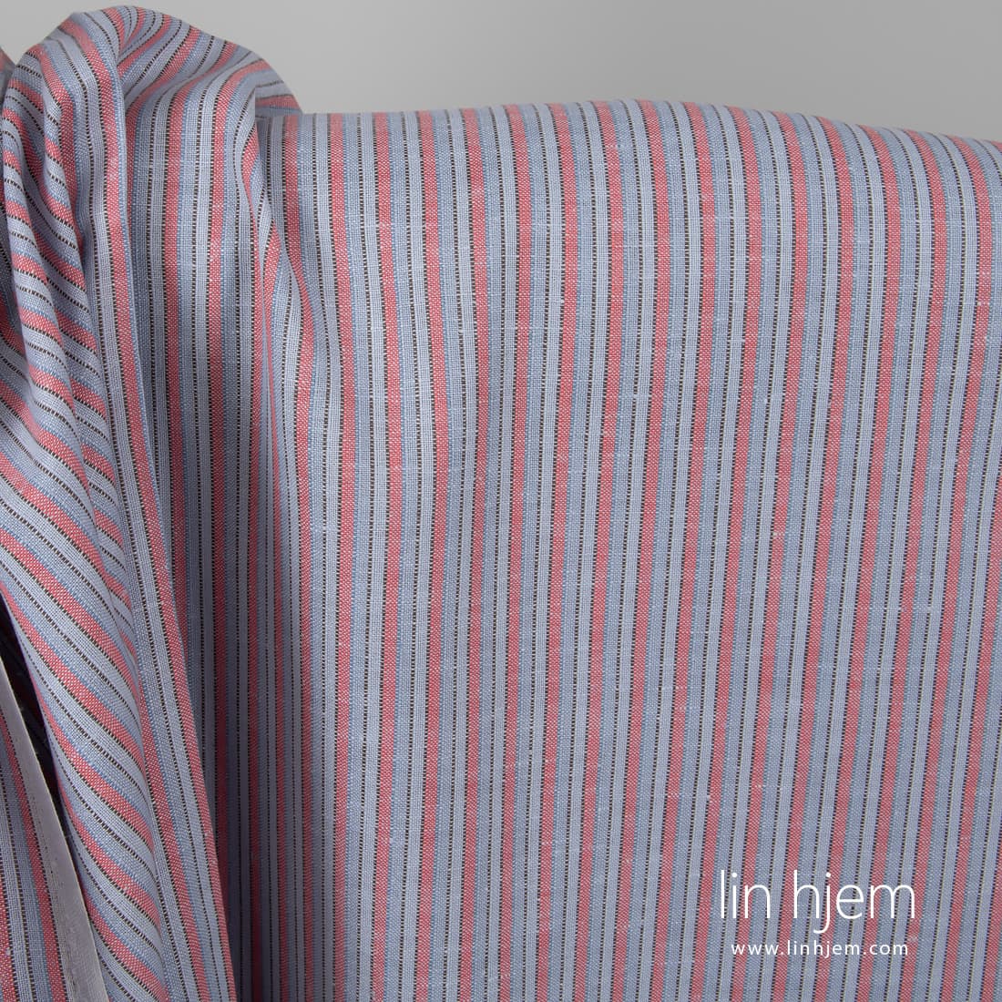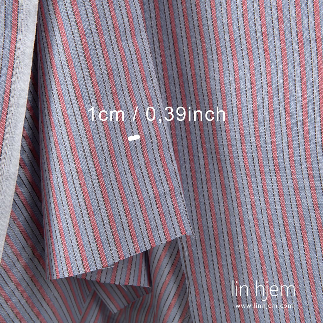• Stripete halvlin stoff, rosa/lys blå farge.