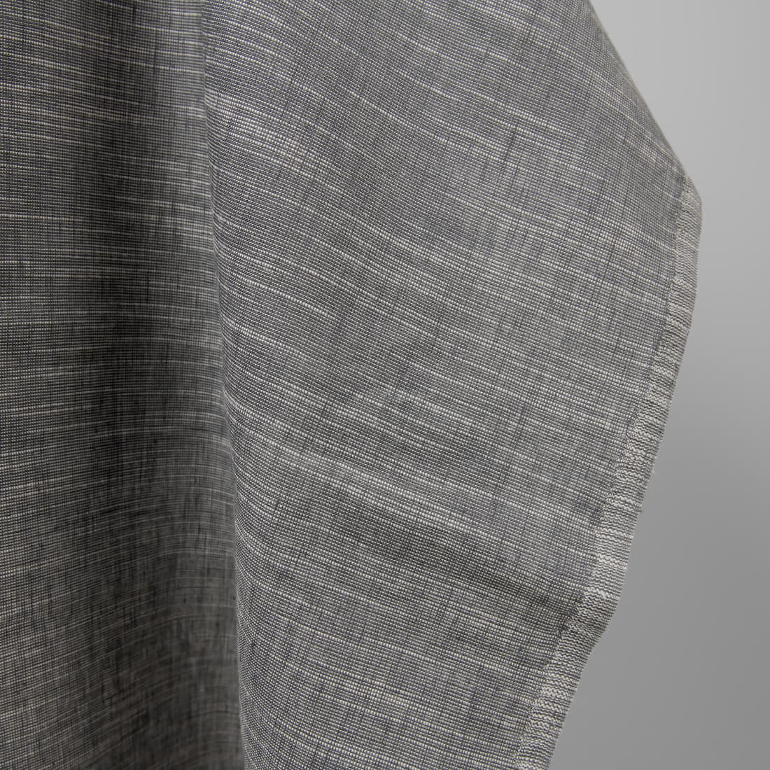 • Lin-bomull stoff mørkegrått-hvitt melert