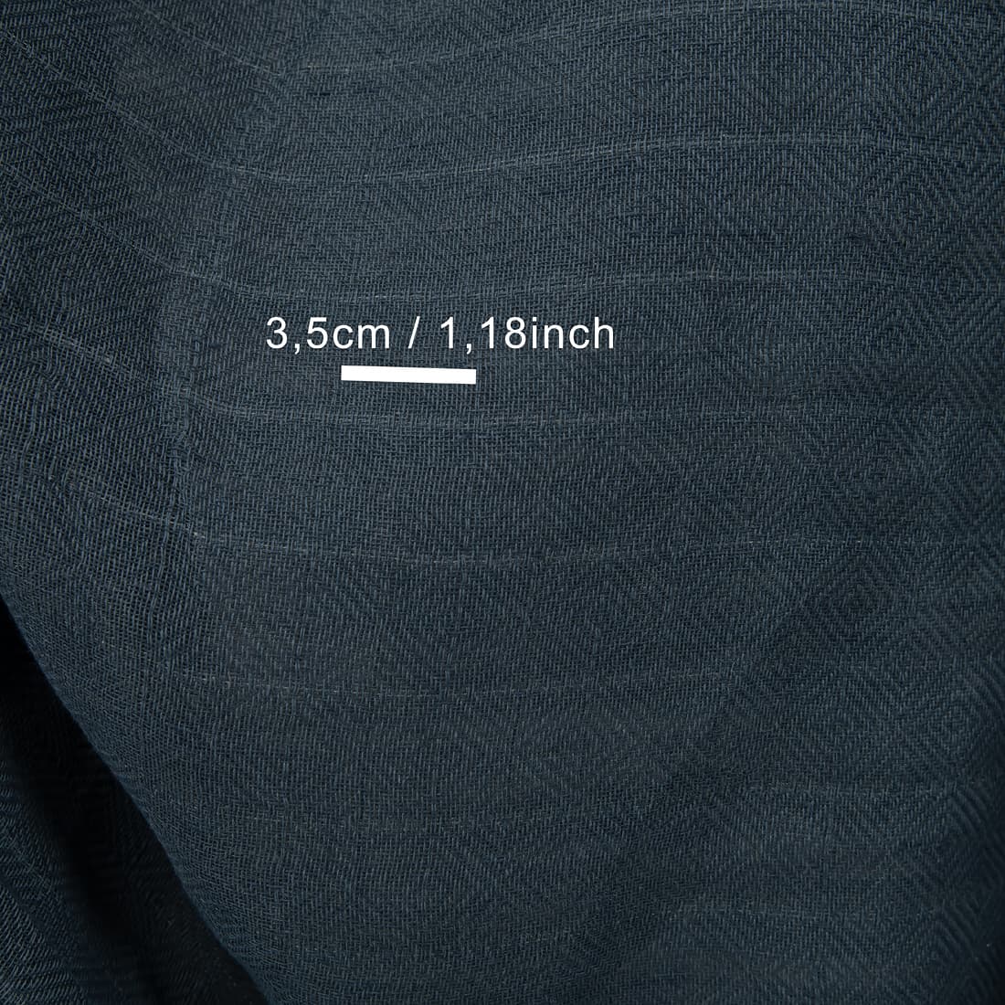• Lin-bomullstoff i diamantmønster vevd av mørkeblått og grønnlig grått garn