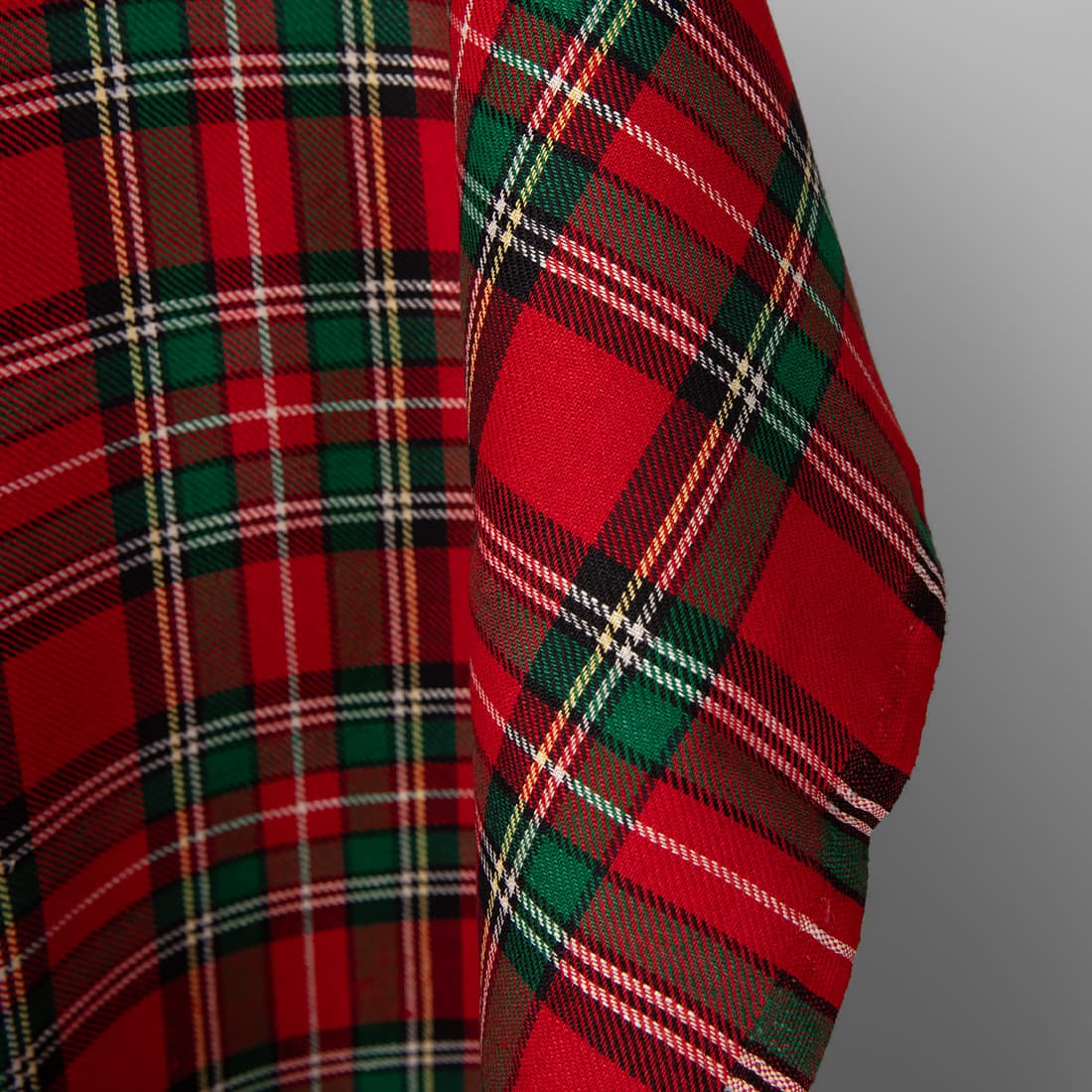 • Halvlinstoff rød-grønn rutete i twill mønster