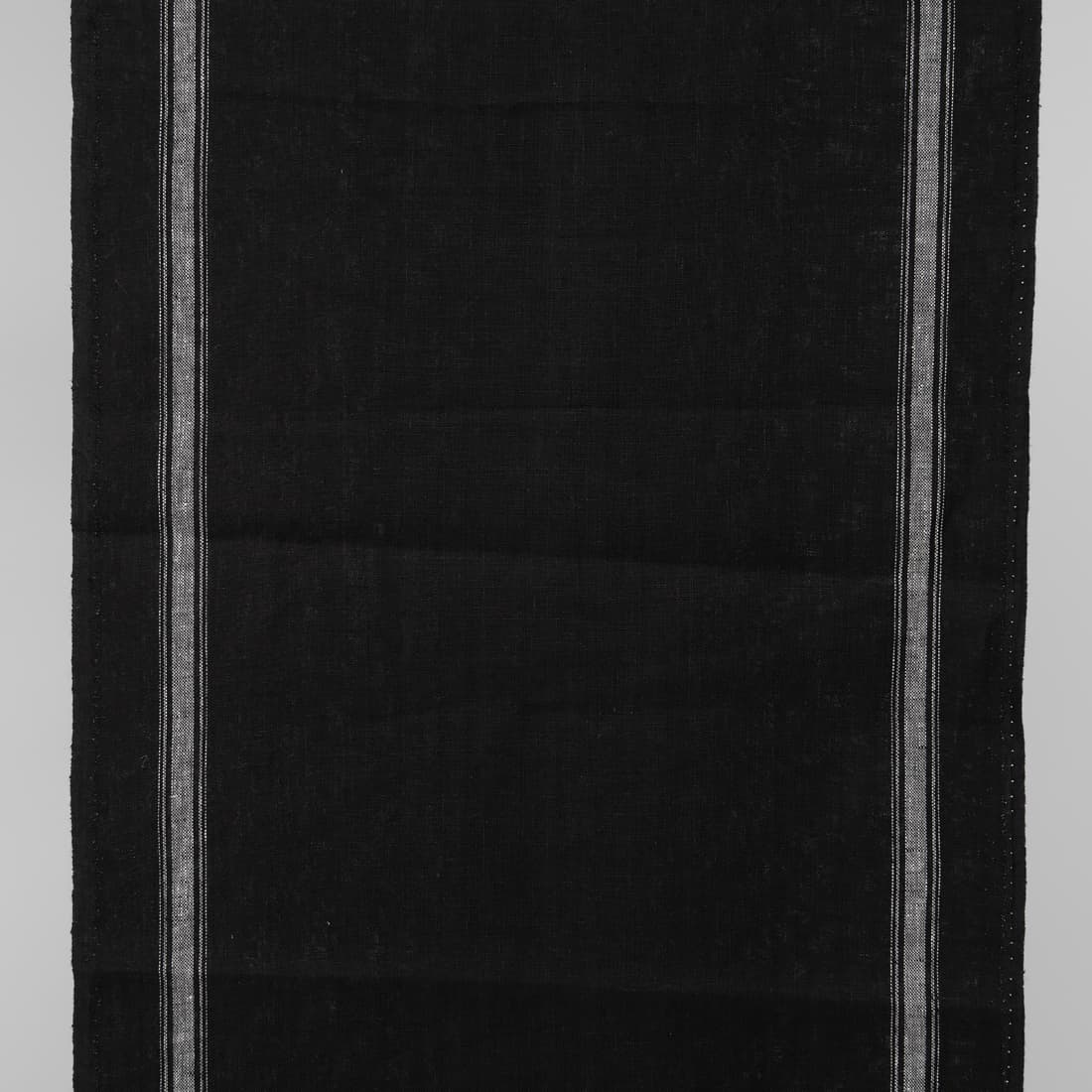 • Håndkle linstoff svart med hvite striper i kantene 50cm bredt