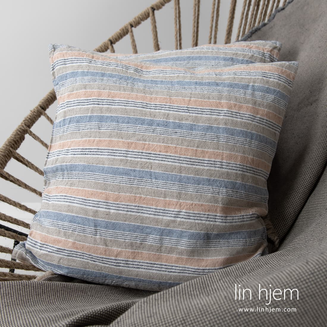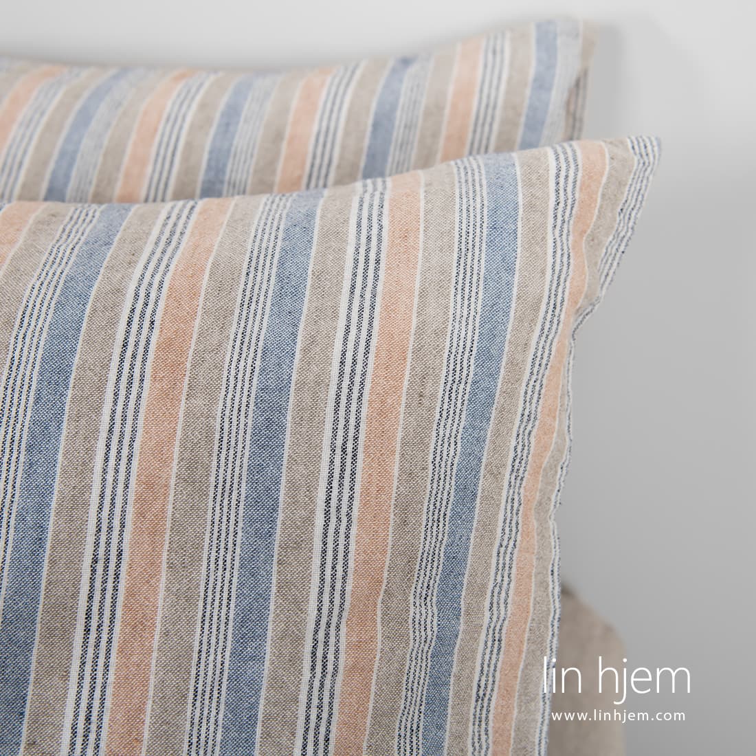 - Putetrekk blå-brun stripete laget med klaff lukking