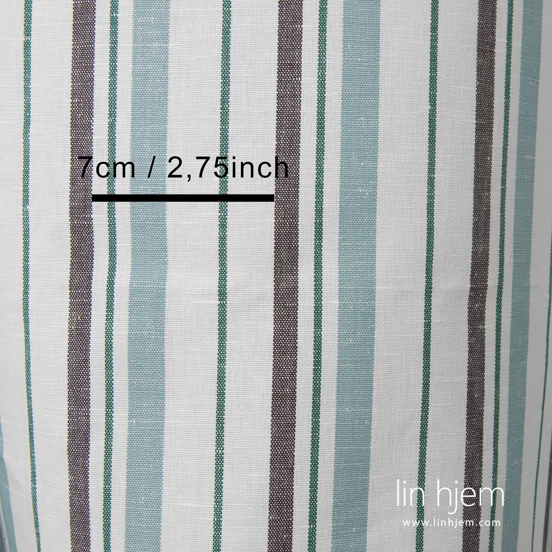 • Hvitt halvlin stoff med grønne og brune striper