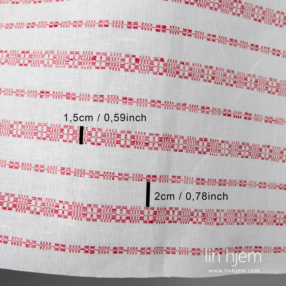 - Farge: vevd av rødt og hvitt garn
