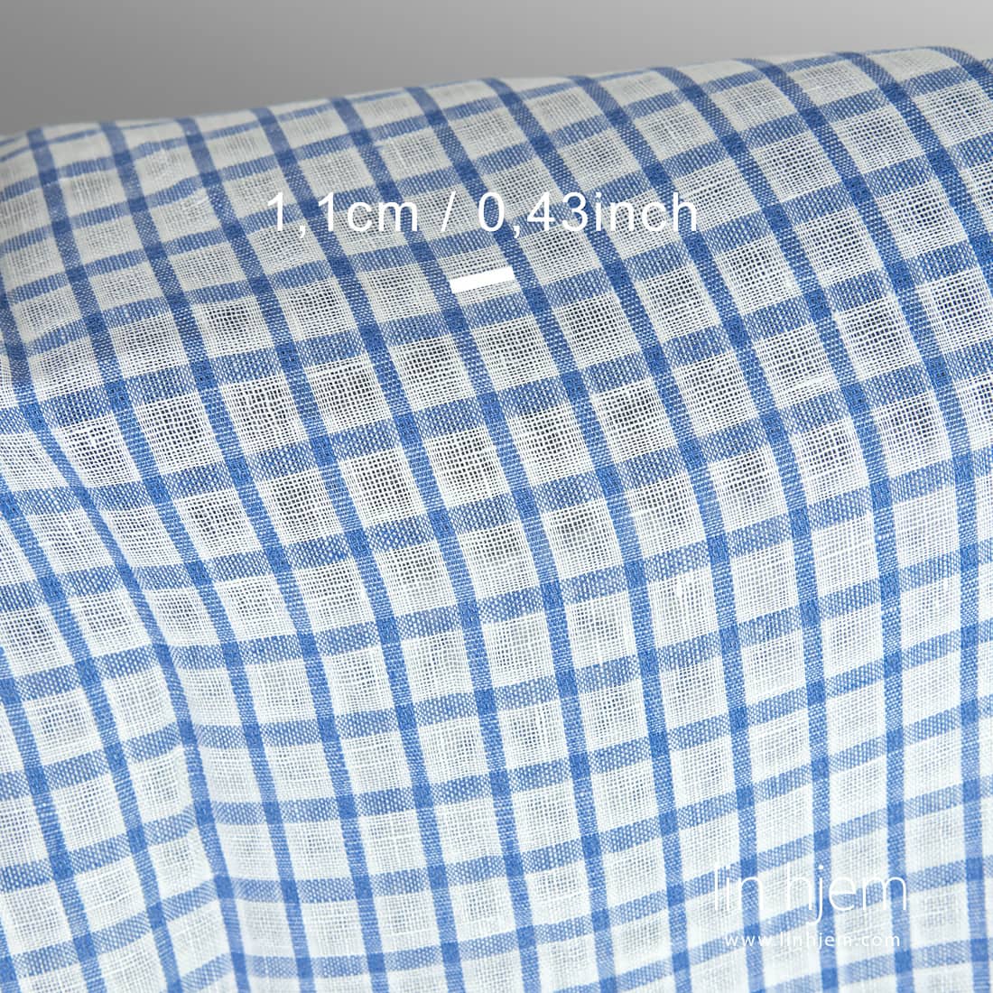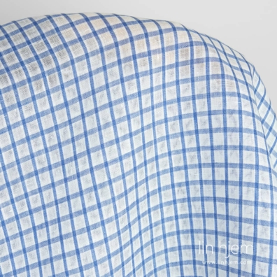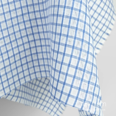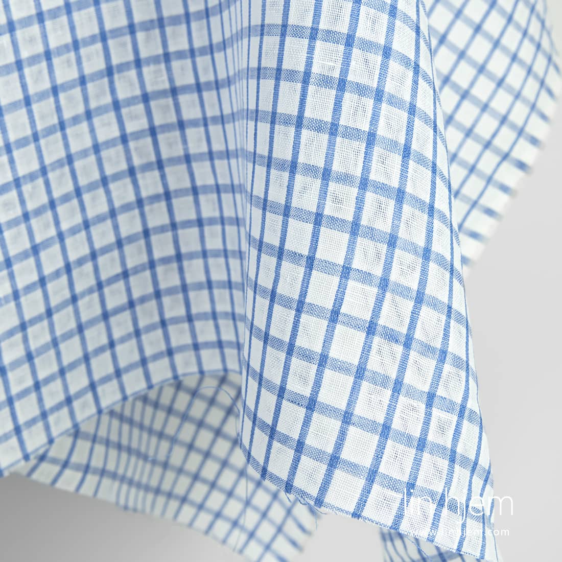 Hvitt og blått gjennomsiktig linstoff i ruter