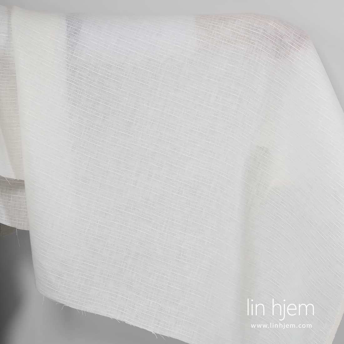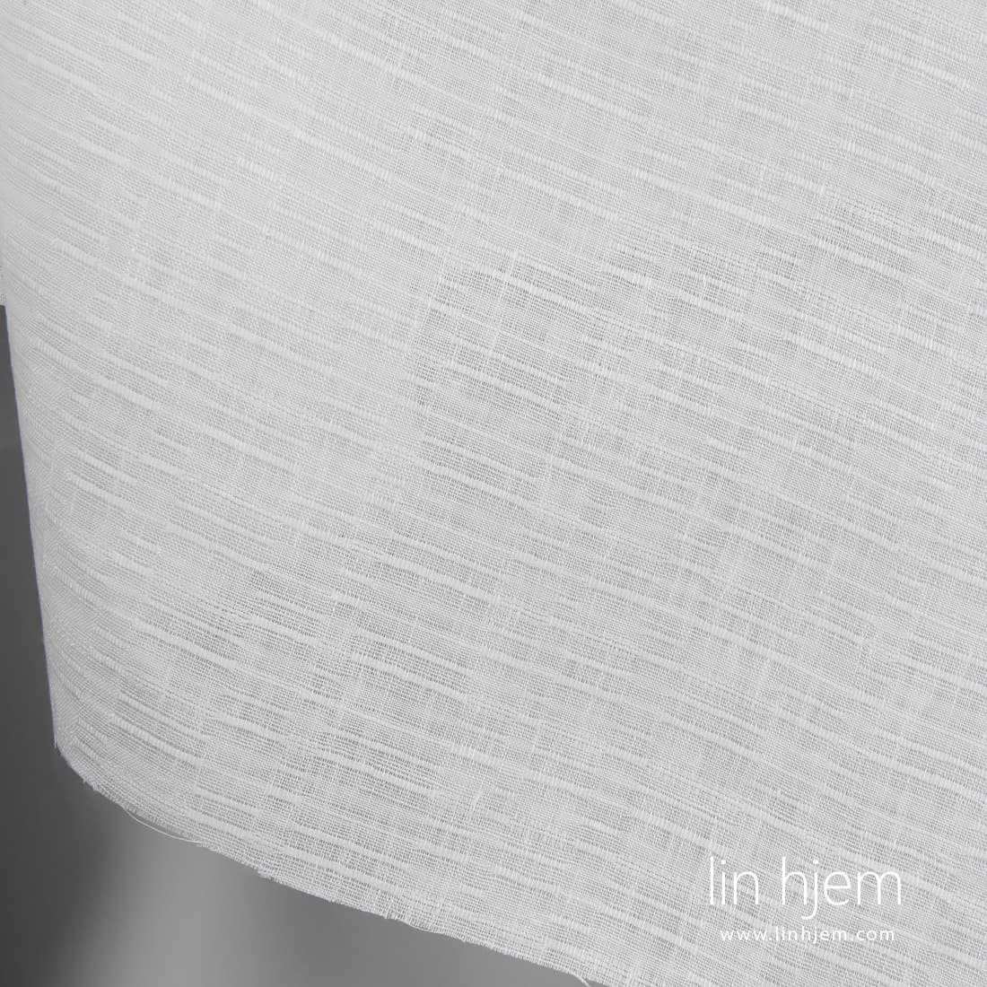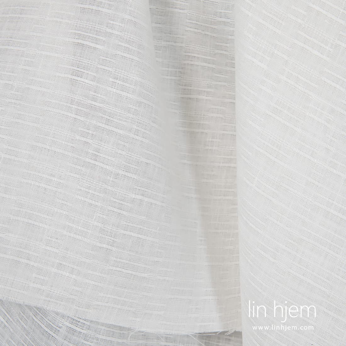 Melkehvitt stripete linstoff med horisontale striper, vevd tilfeldig. Lett, middels tykkelse stoff som passer til å sy klær og forskjellig hjem tekstil produkter.