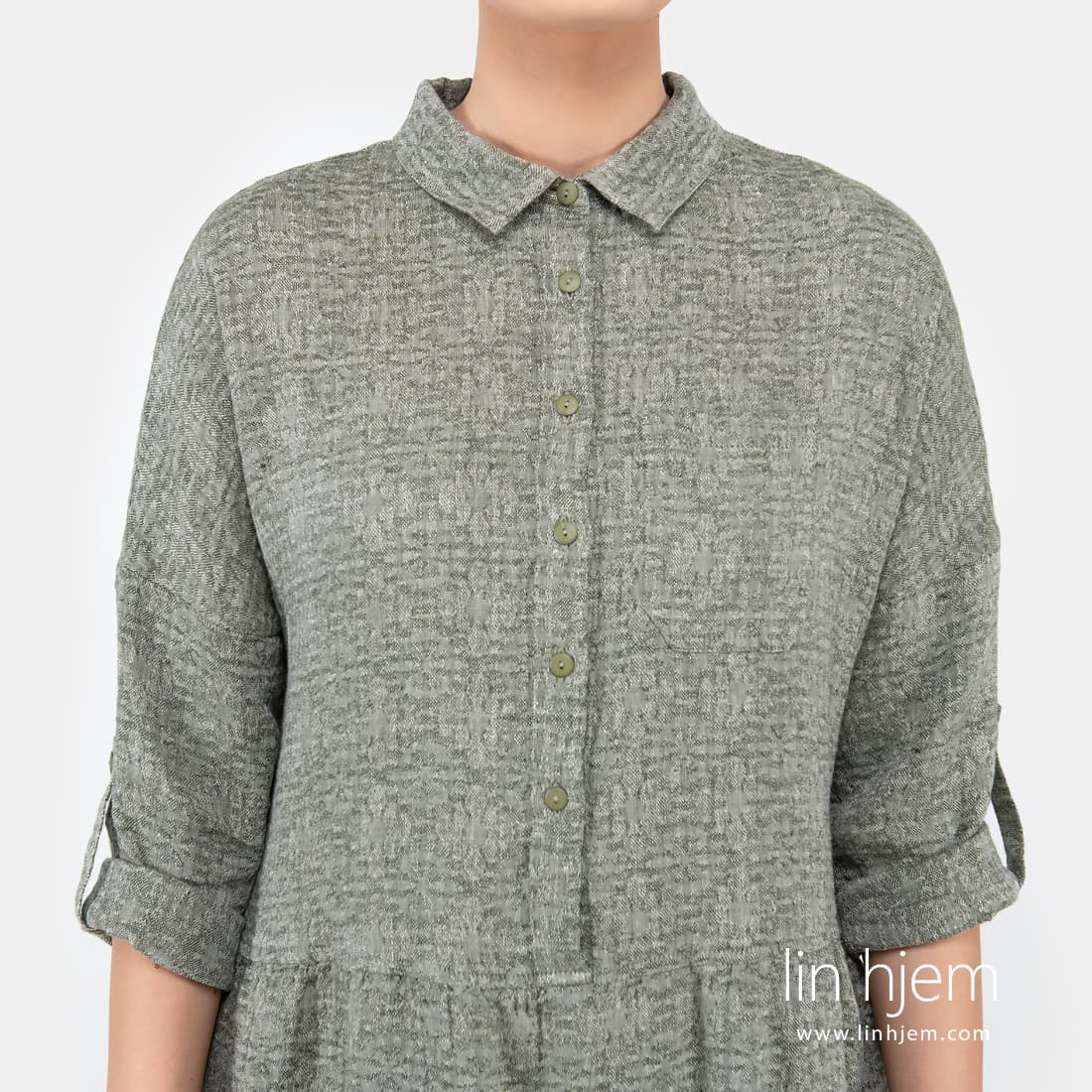 - Detaljer: festes med vakre knapper til midjen; en liten lomme på venstre bryst; med vedlagte 3/4-ermer; litt rynket i midjen; med lommer i sidesømmene