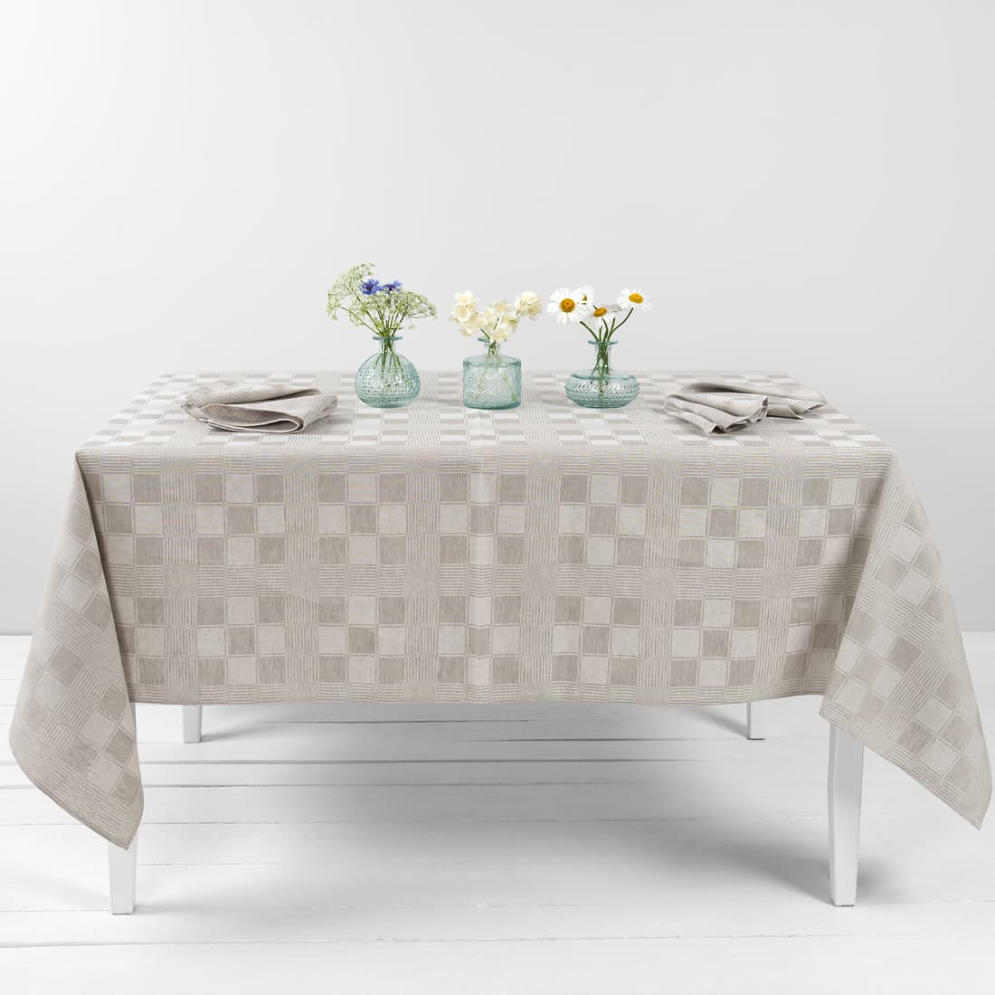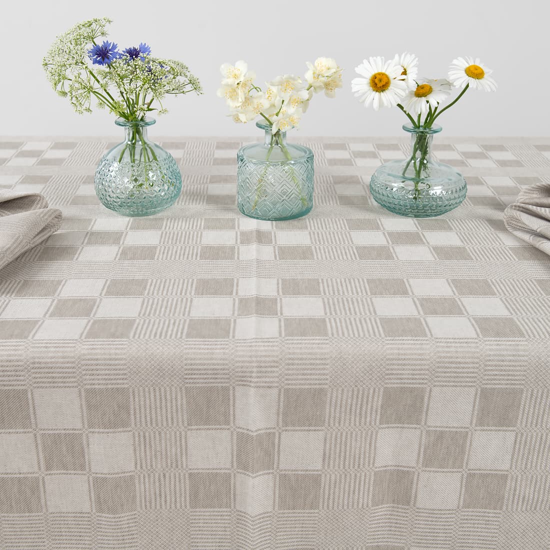 • Lin-bomull duk med ruter vevd av hvitt og brungrått garn