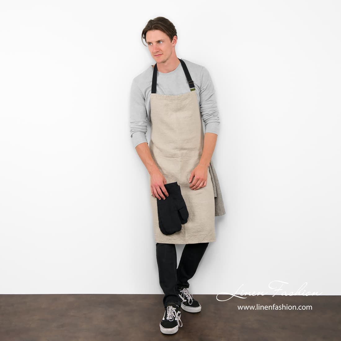 Merk: dette forkléet passer for både kvinner og menn. Produktet er laget av spesielt vasket stoff, størrelsen kan variere noe. Dette produktet er laget med naturlig lin (ufarget) garn, så fargenyansen på stoffet kan variere noe fra bildet som vises. Noe nyansevariasjon kan forekomme mellom partier.