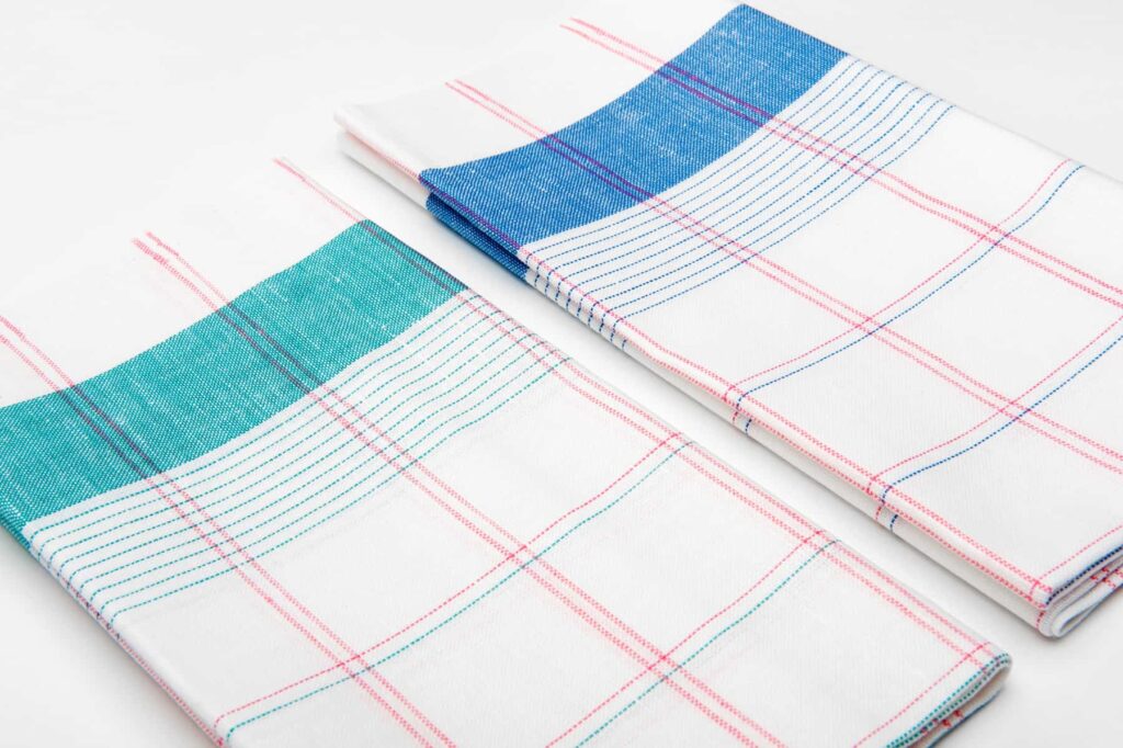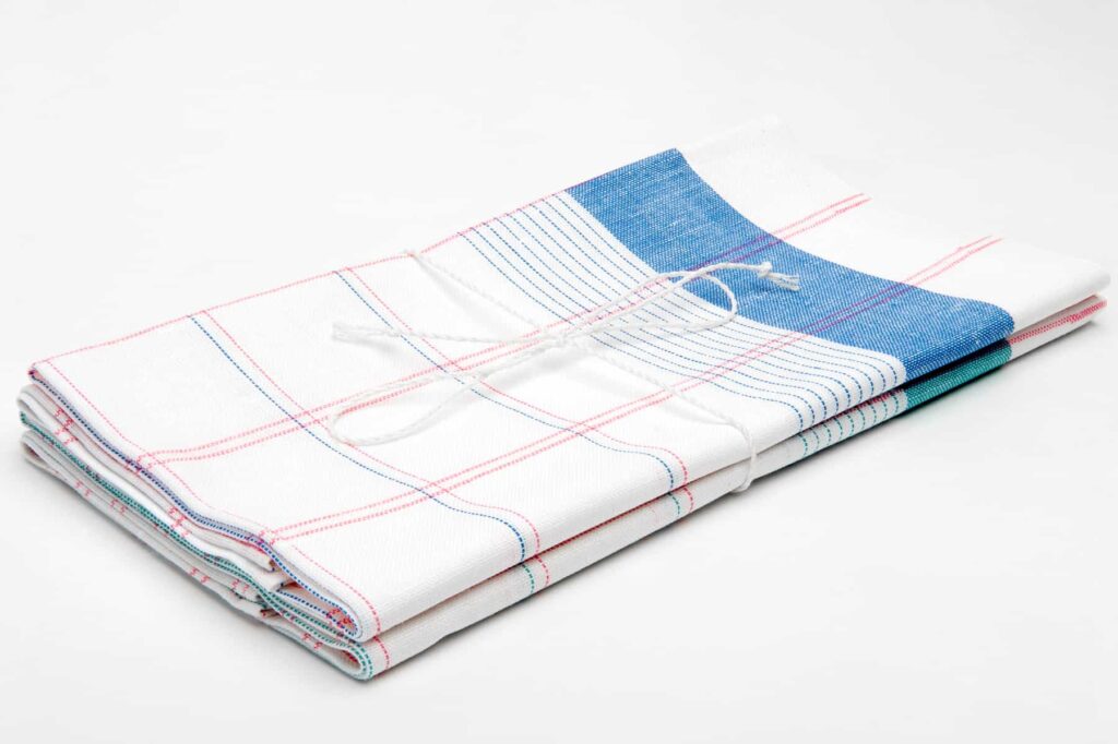 - andre håndkle: blanding av optisk hvit, kjølig blå og sterk rosa
