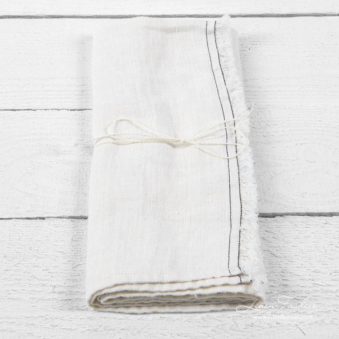 - Konfeksjon: faldet på 3 sider, korte frynser med brun søm på én side