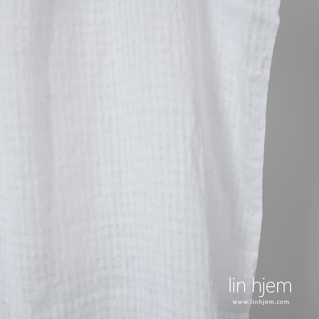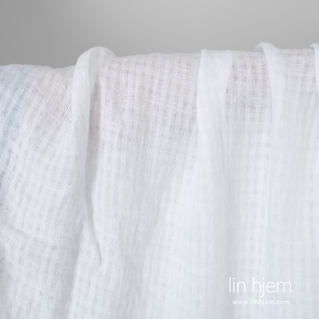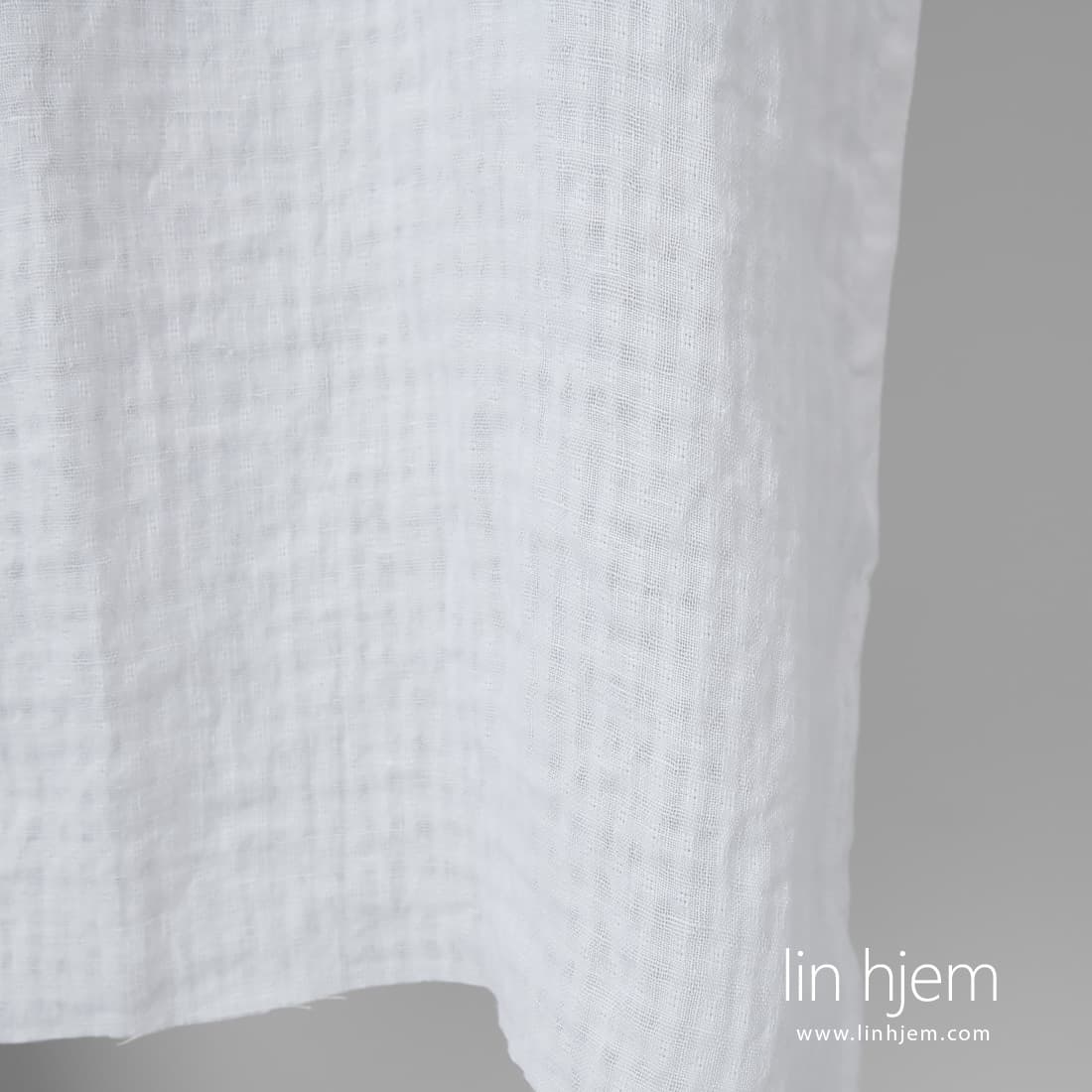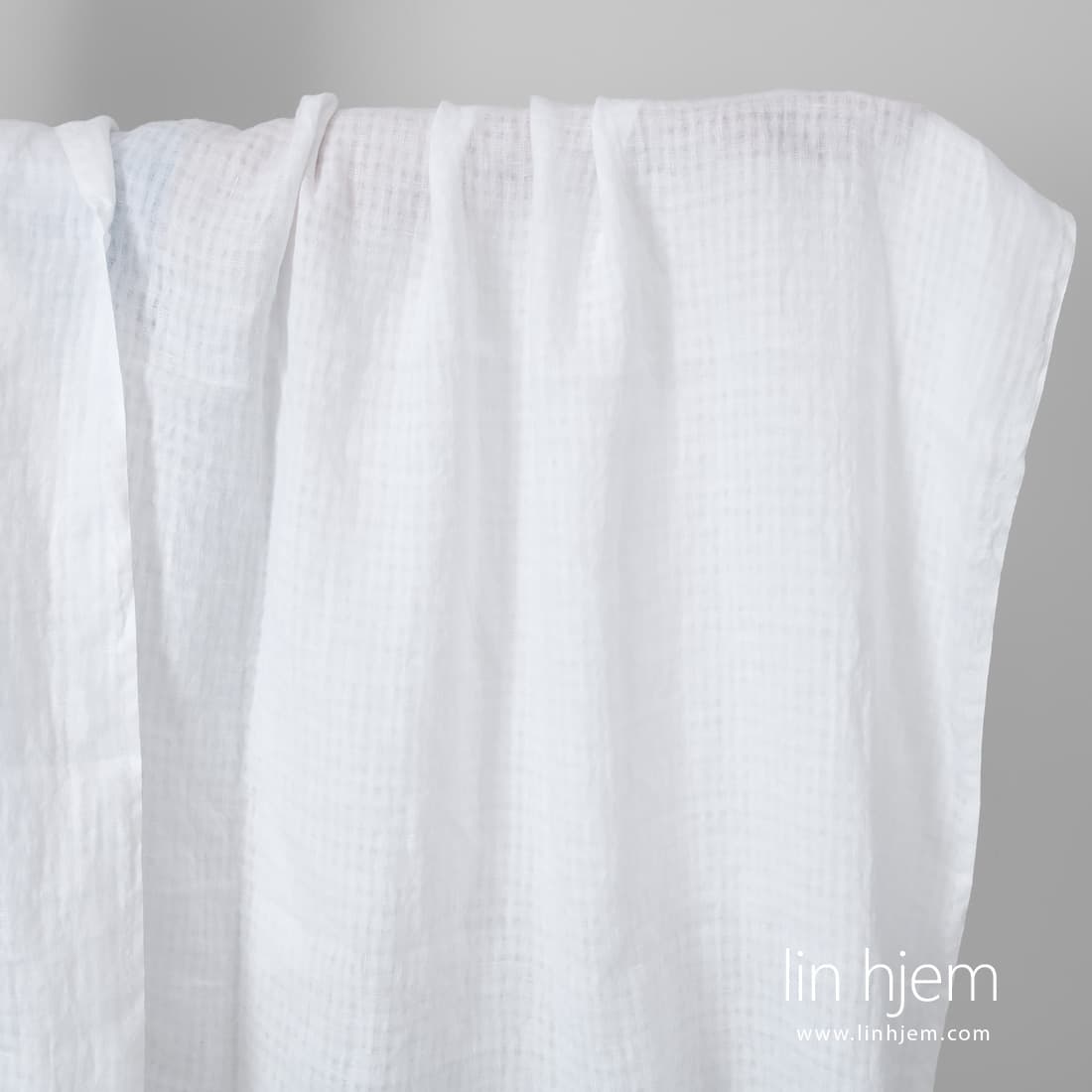 • Knallhvitt lett linstoff i gjennomsiktige ruter vasket