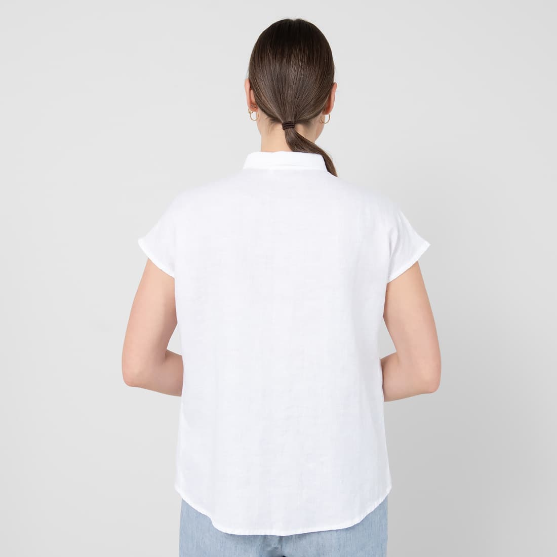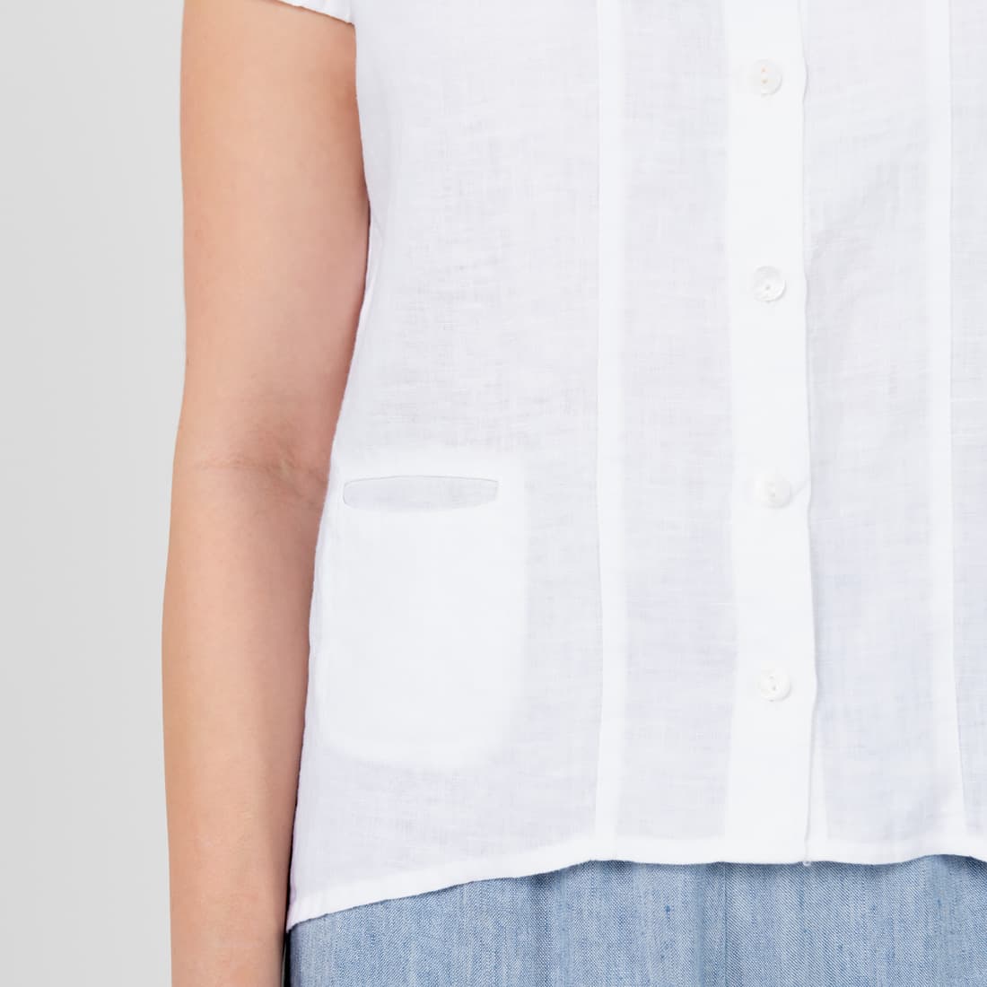 - Detaljer: korte ermer, gjennomgående knappestolpe, liten klafflomme på høyre side