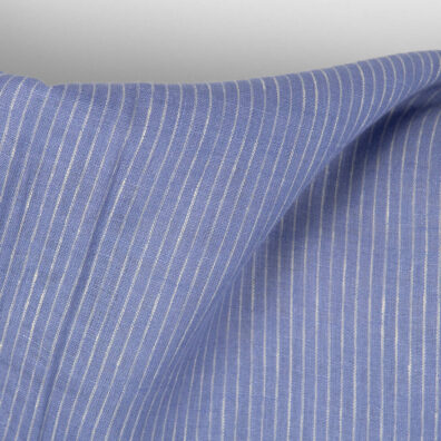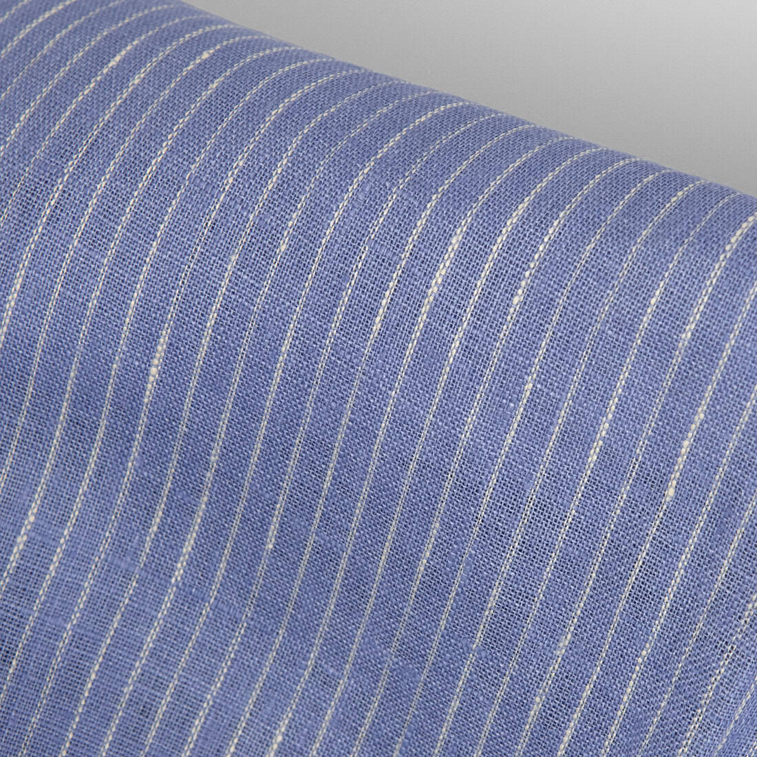 • Lett linstoff med blå og gule striper for klær, hjemmetekstiler