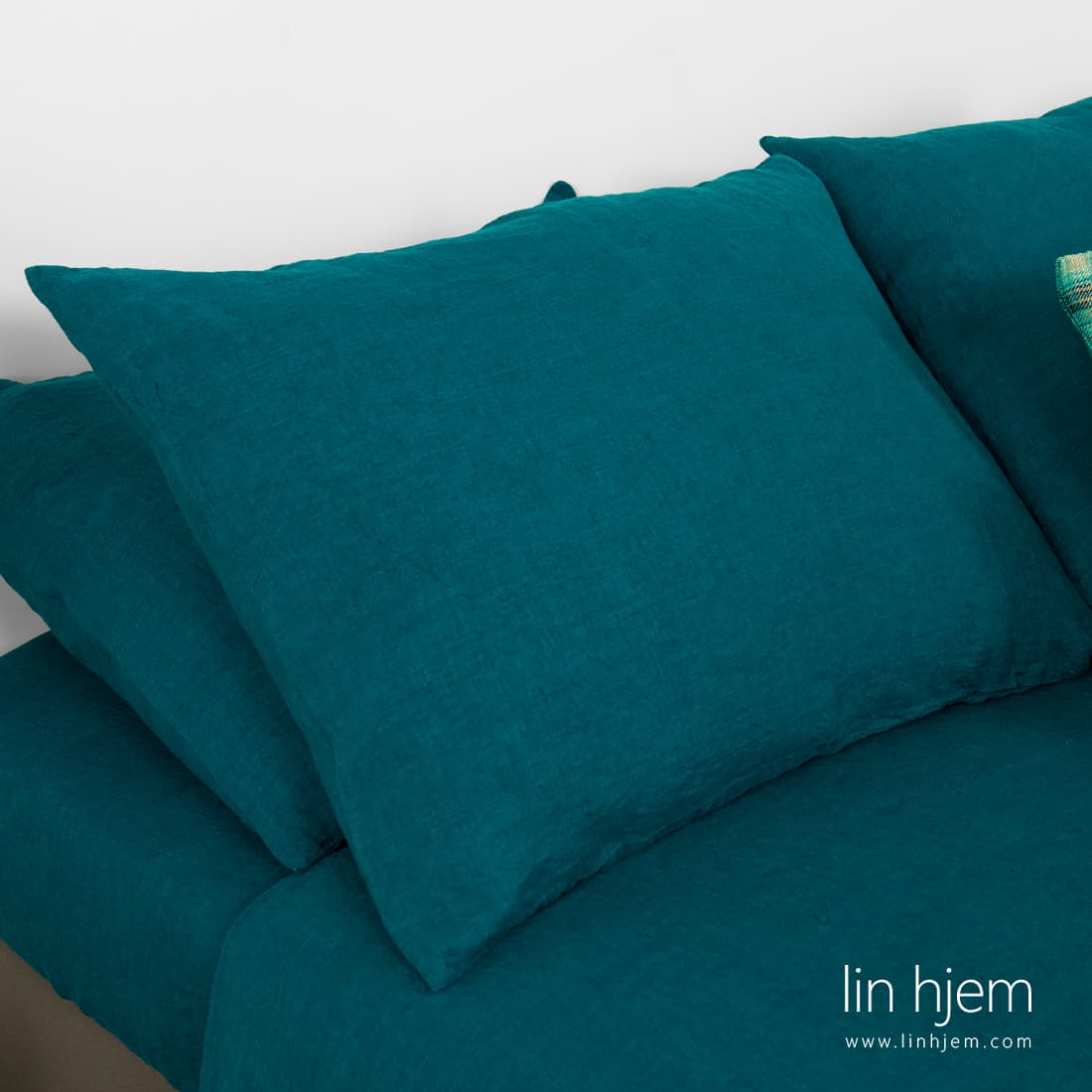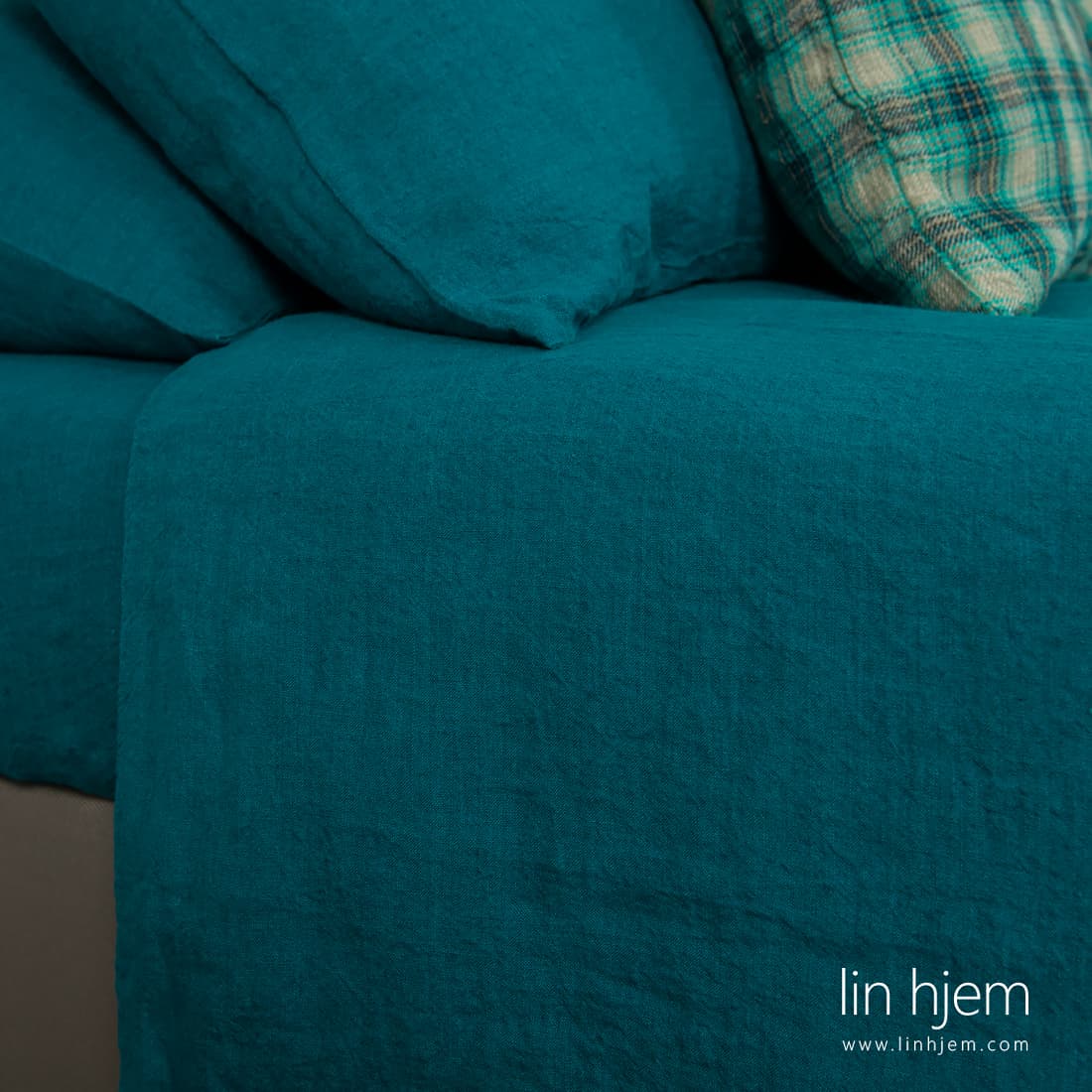 Mørk-turkis farge lin sengesett av mykt, skånsomt, vasket 100% linstoff. Intens blått med grønn nyanse stoff. Dynetrekk, putetrekk og laken er også laget av samme type linstoff. Unik farge kommer til å pynte soverommet ditt. Dette myke stoffet vil varme eller avkjøle (avhengig av årstiden), la huden puste og dermed forbedre kvaliteten på hvile og søvn.