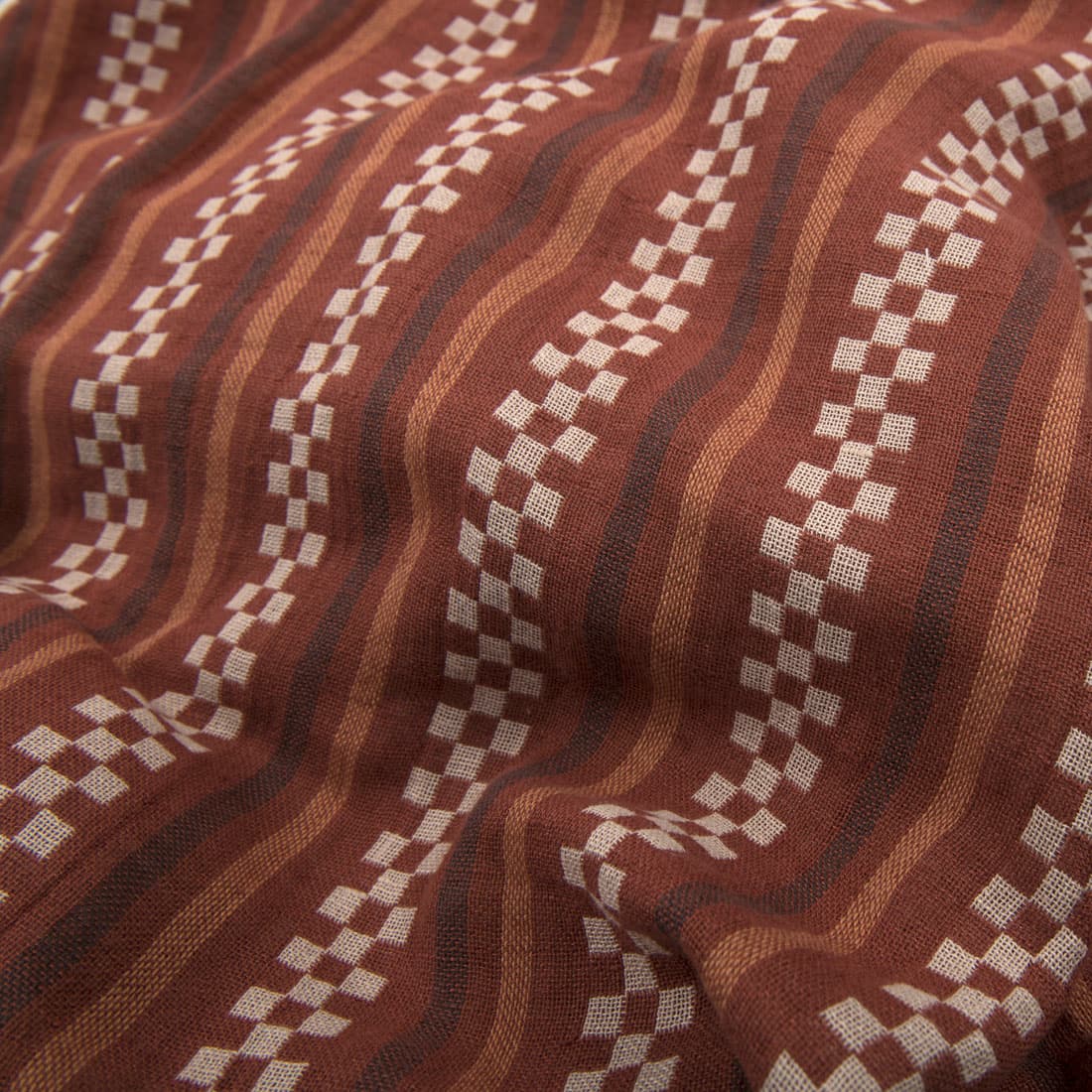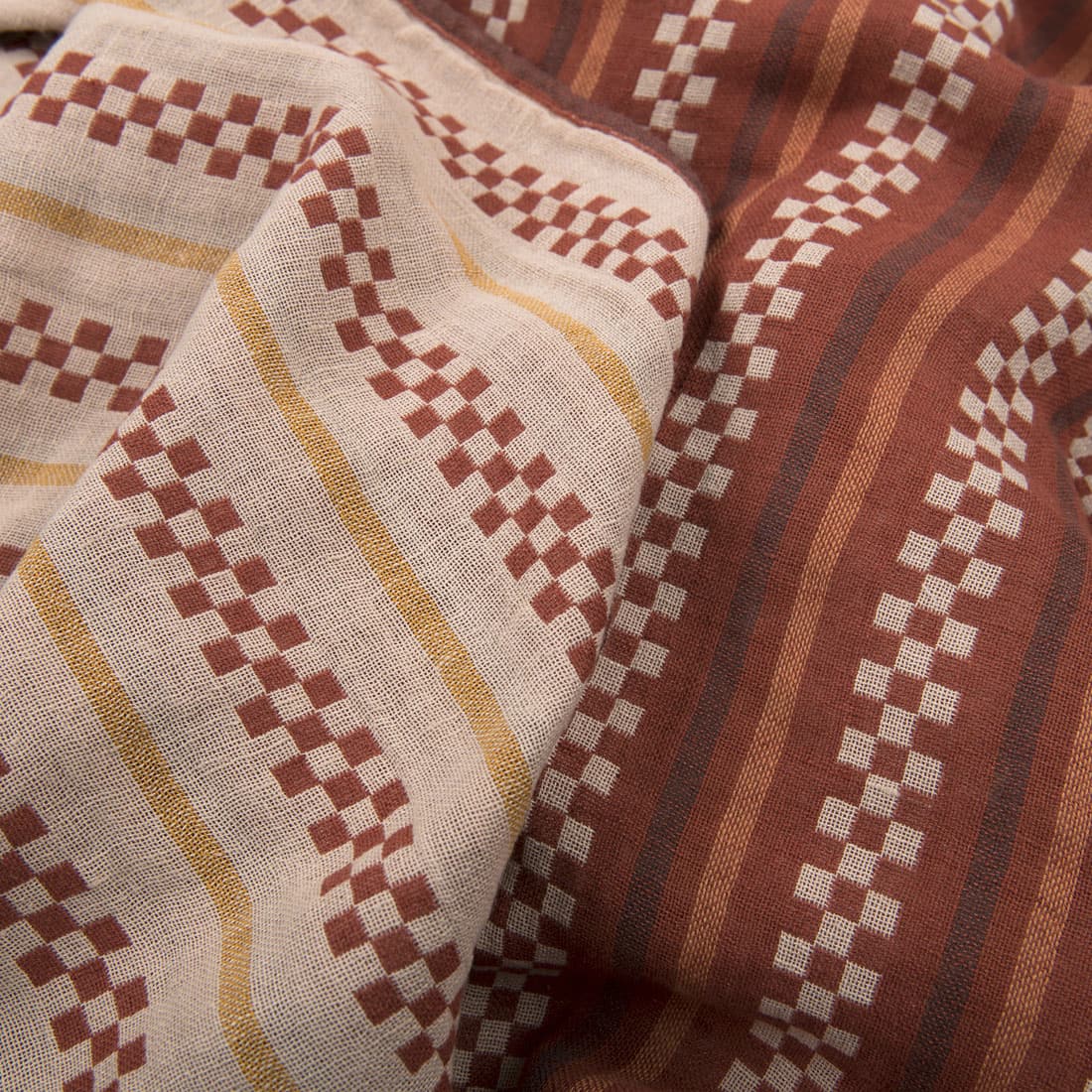 - Farge: vevd lys sand, brun, dyp brun, gyllen oker og brent leirfarget garn