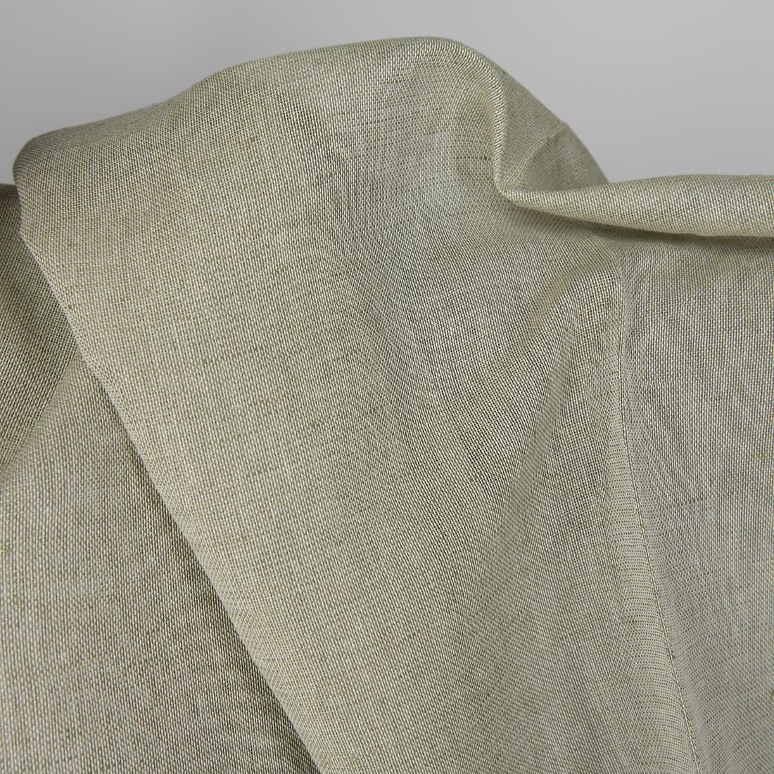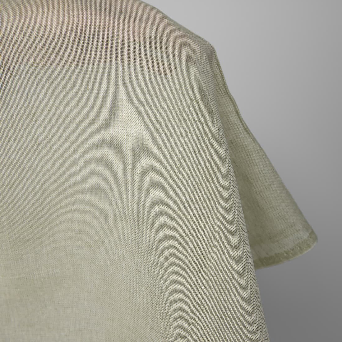• Lin-bomullsstoff hvit-grønn melert 150cm bredt