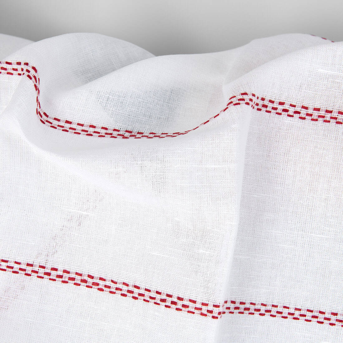 • Lin-bomullsstoff hvit med røde striper for klær, hjemmetekstiler