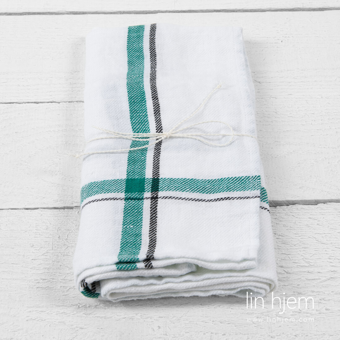 Lin kjøkkenhåndkle i grønne ruter. Produktets stoff - 100% lin, av hvite, svarte og grønne garn. Stoffet er spesielt vasket som gjør dette produktet veldig mykt, skånsomt. Absorberer fuktighet godt. Kan være en fin gave til venner og kjente.