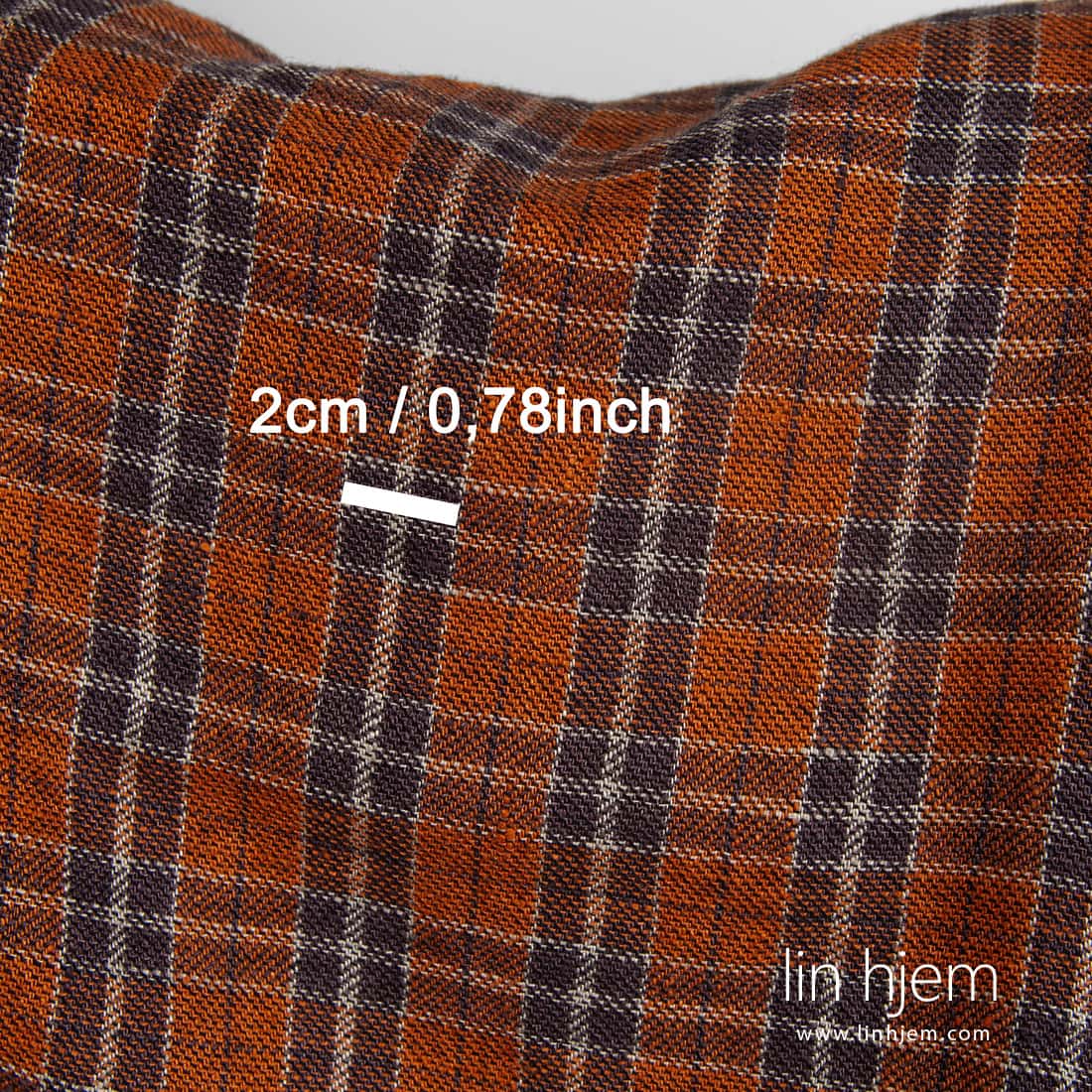 - Farge: vevd av mørkebrunt, oransje og svart garn