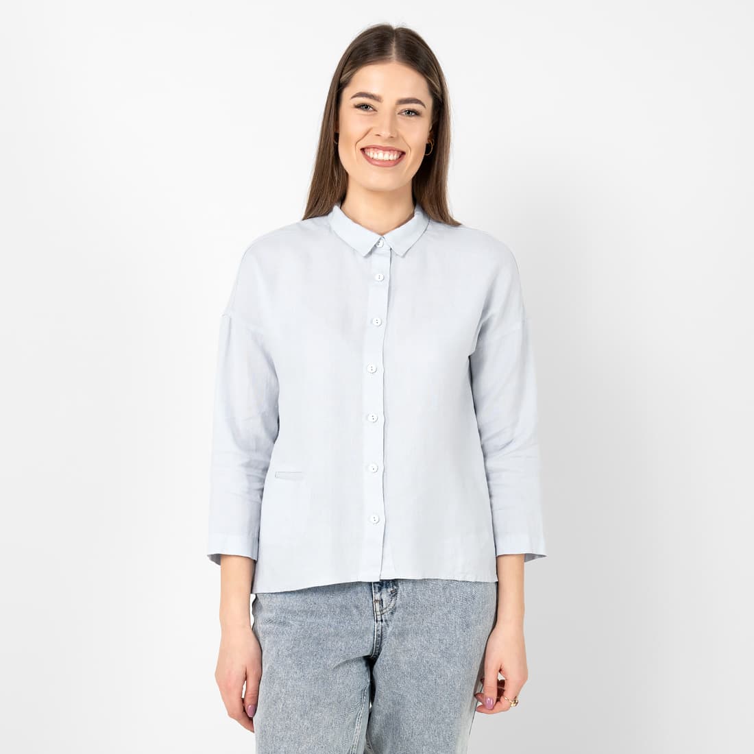 - Produktmodell: skjortestil, rett silhuett, hoftelang, 3/4 ermer