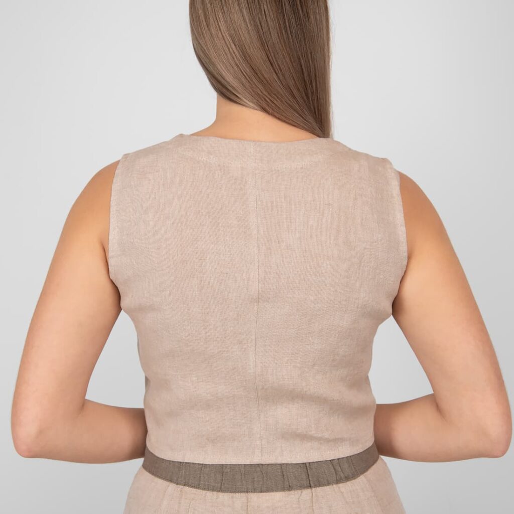 - Produktmodell: rett silhuett, V-hals, ermeløs