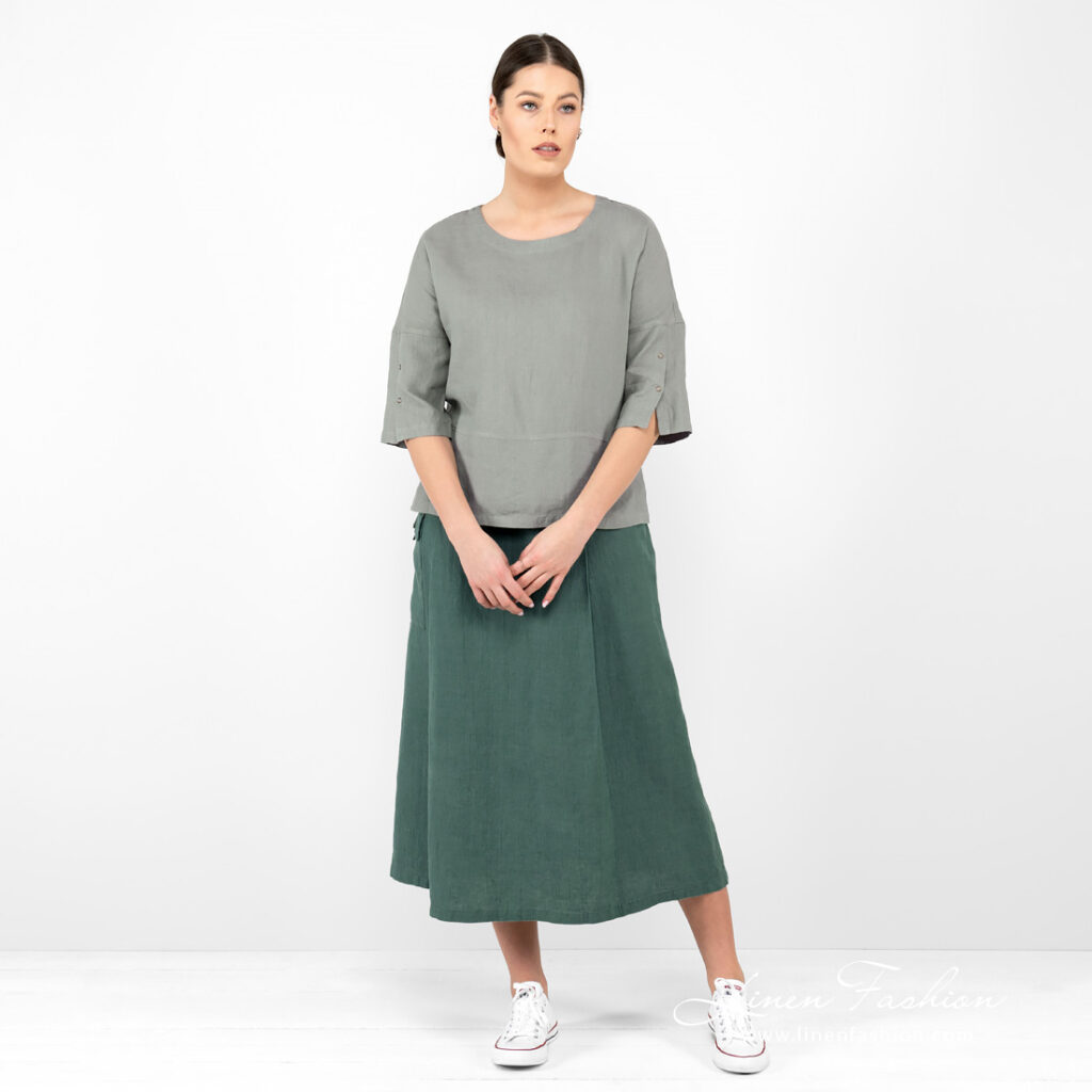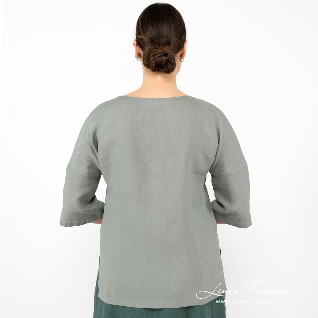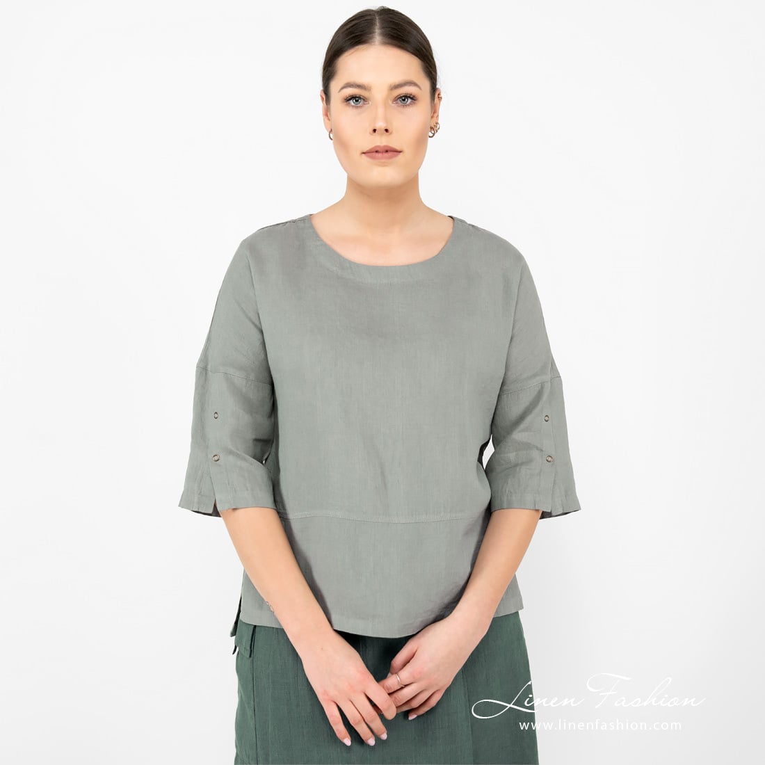 - Detaljer: rund halsutskjæring, 3/4-ermer med trykknapper, splitter i sidene